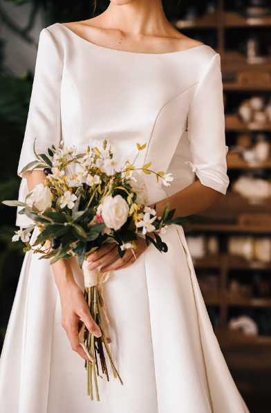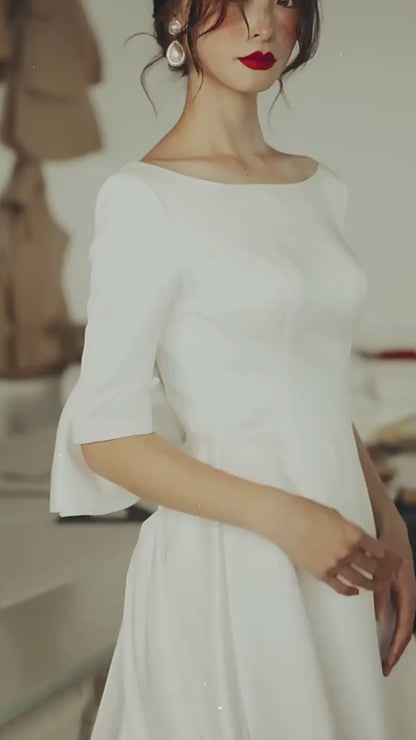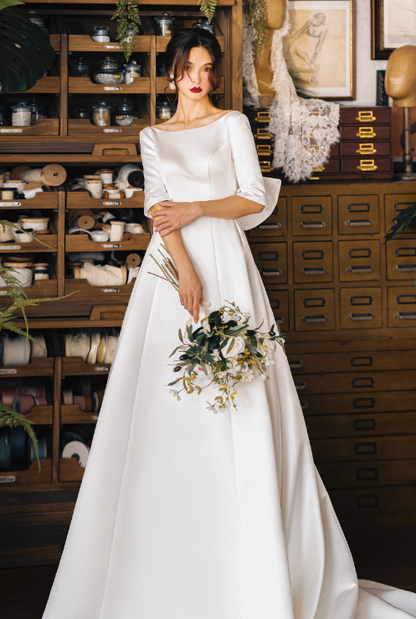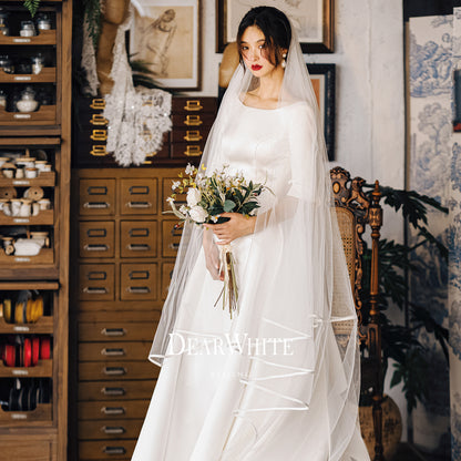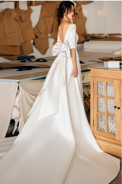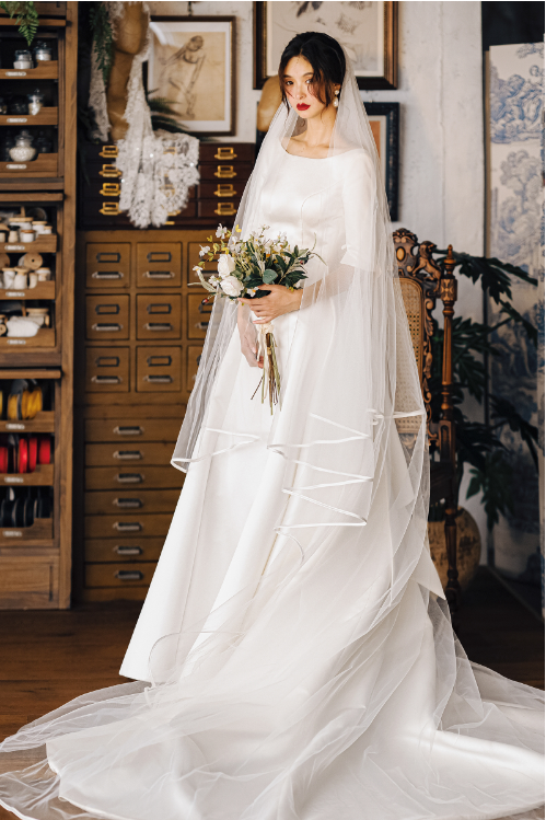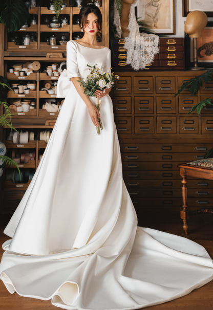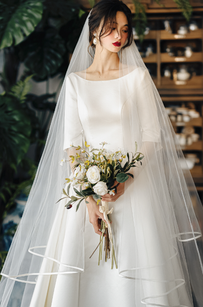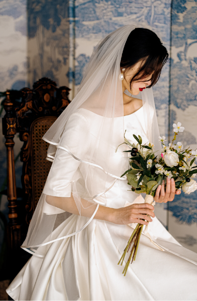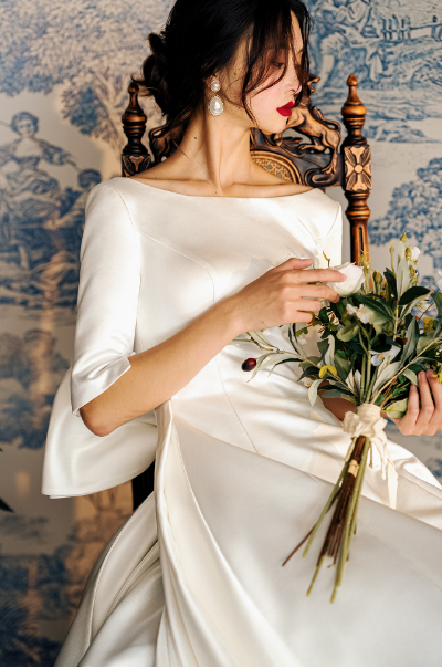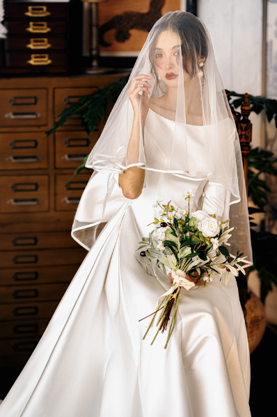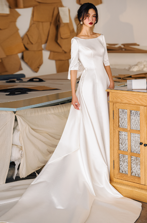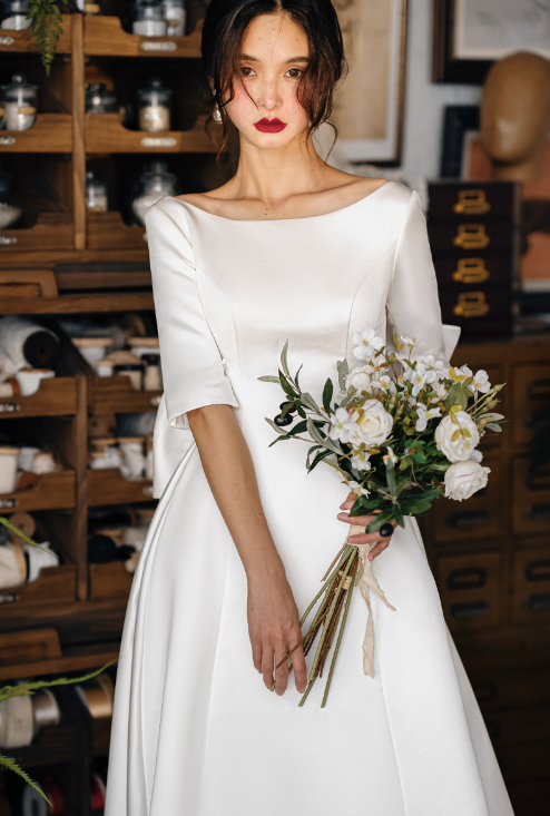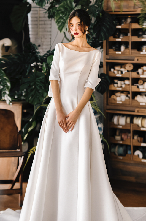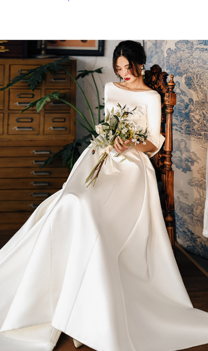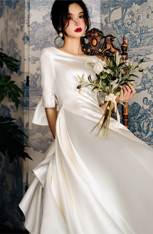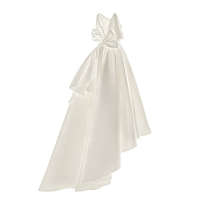 Early Spring original new soft satin one-shoulder wedding dress bride- Thousand Birds