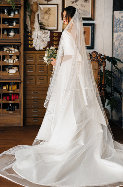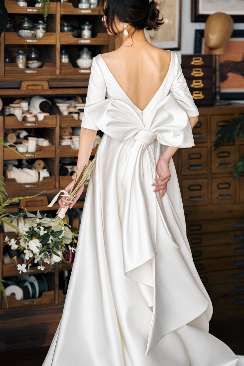 Early Spring 2023 original new soft satin one-shoulder wedding dress bride- Thousand Birds