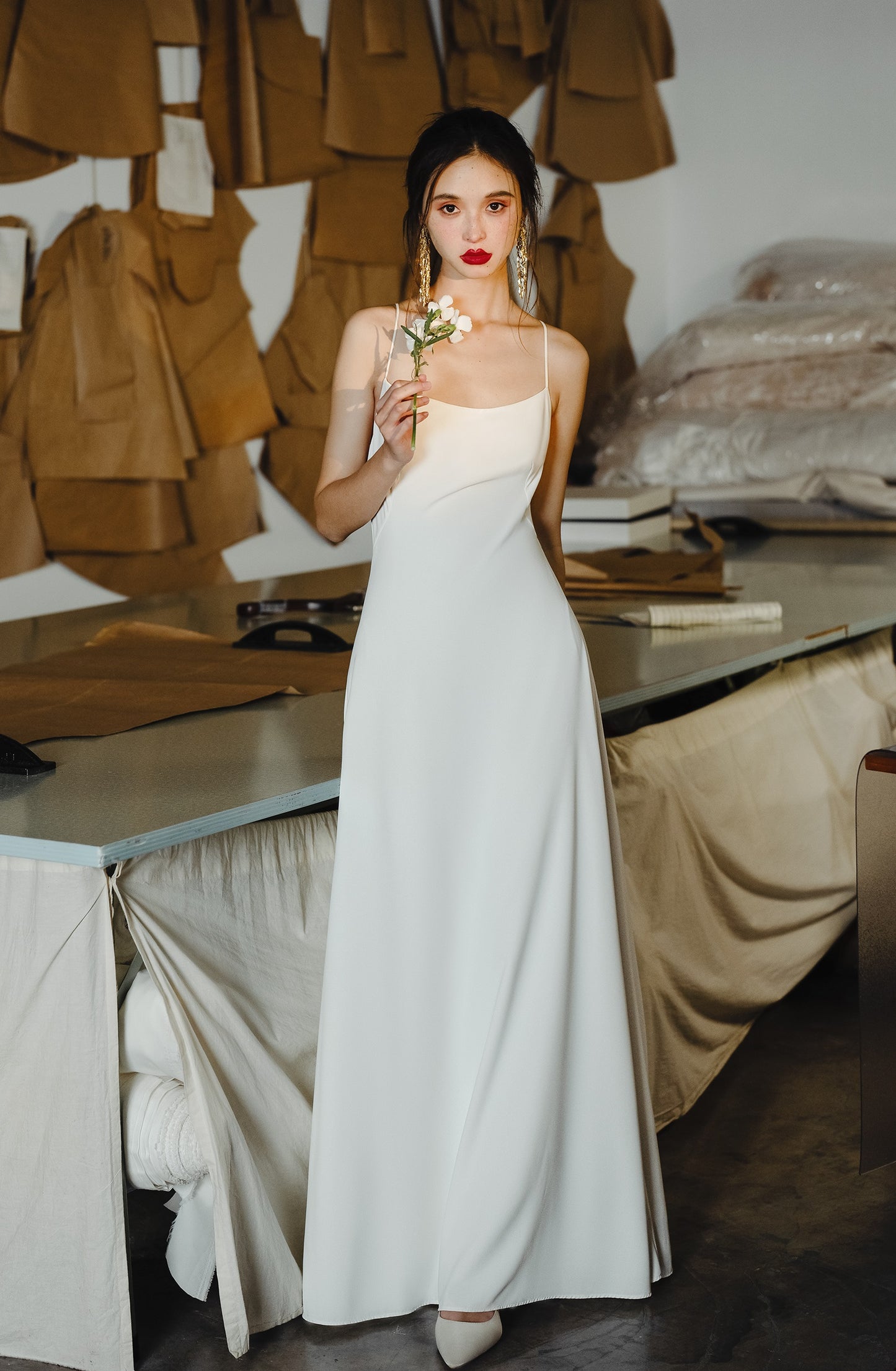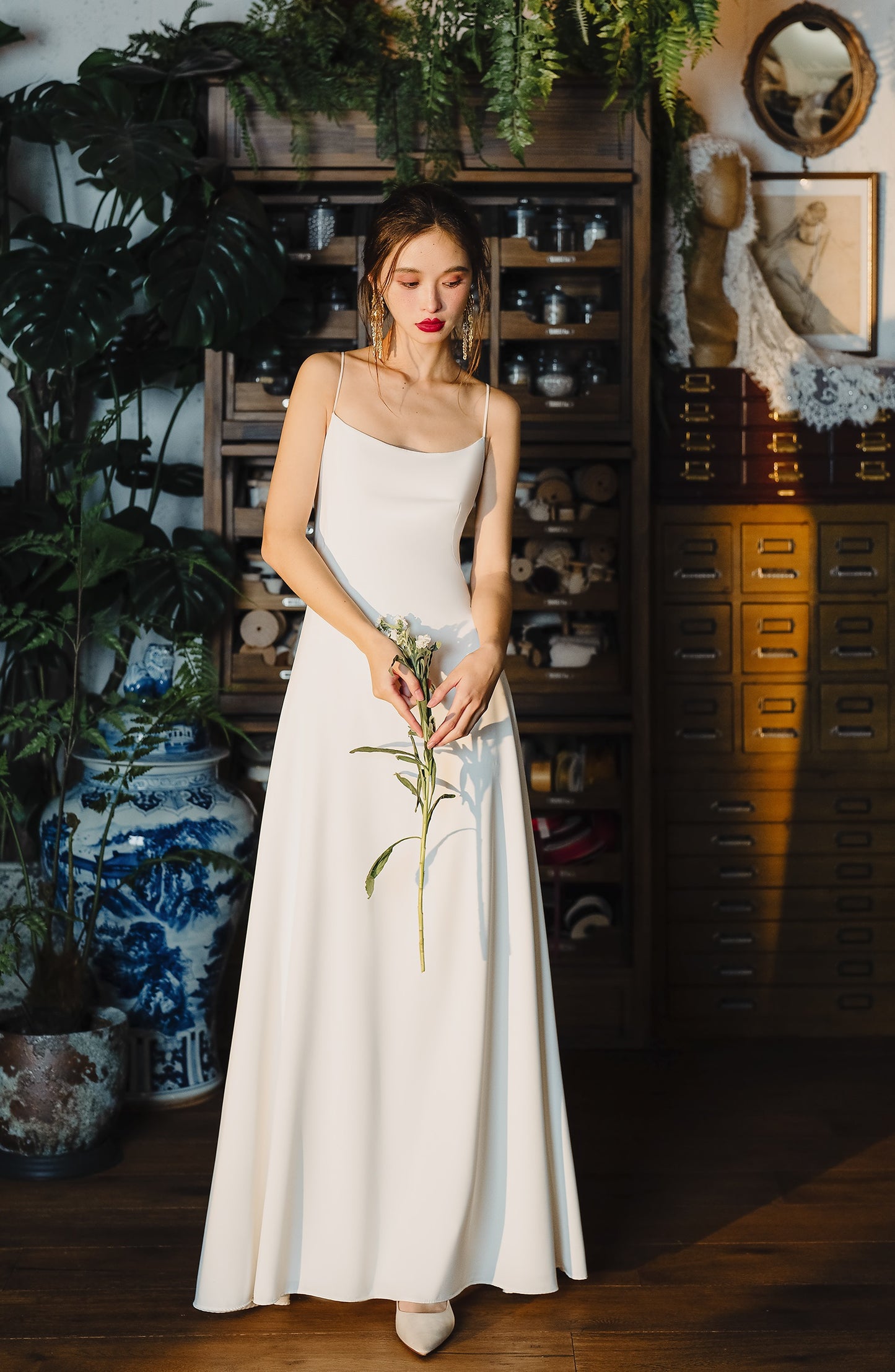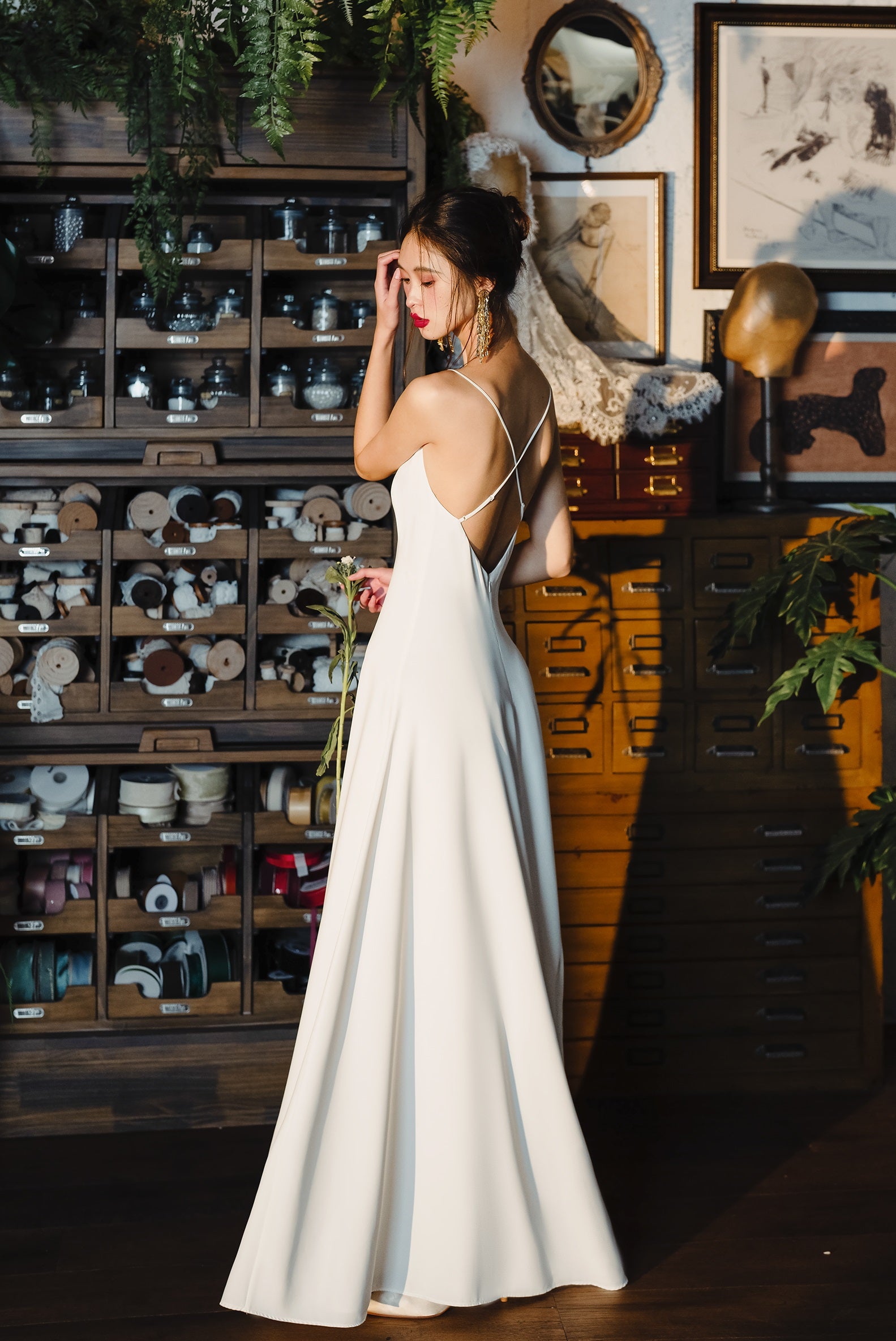 Early Spring 2023 original Straight Shoulder Strap simple wedding bridal dress- Confession