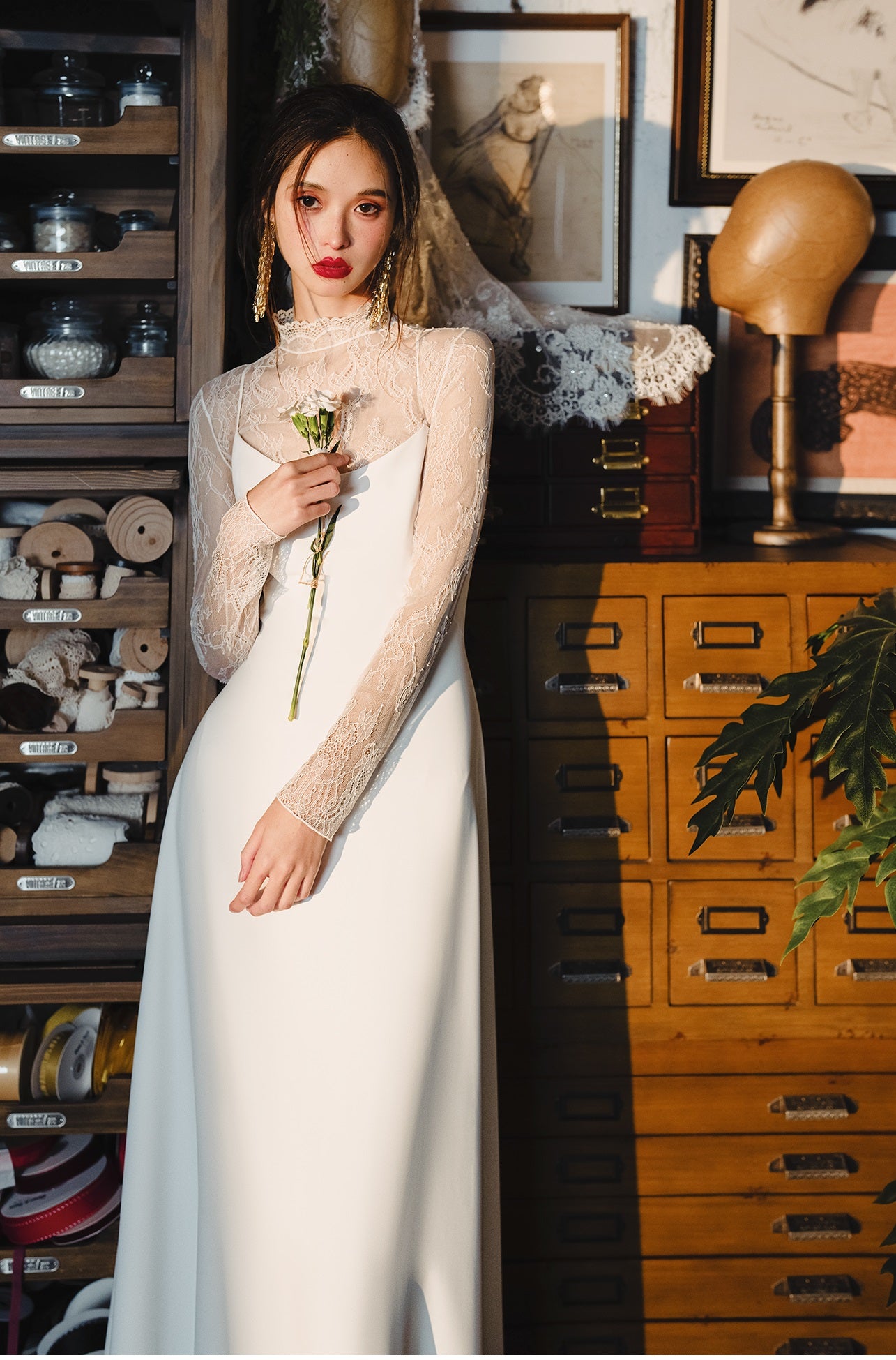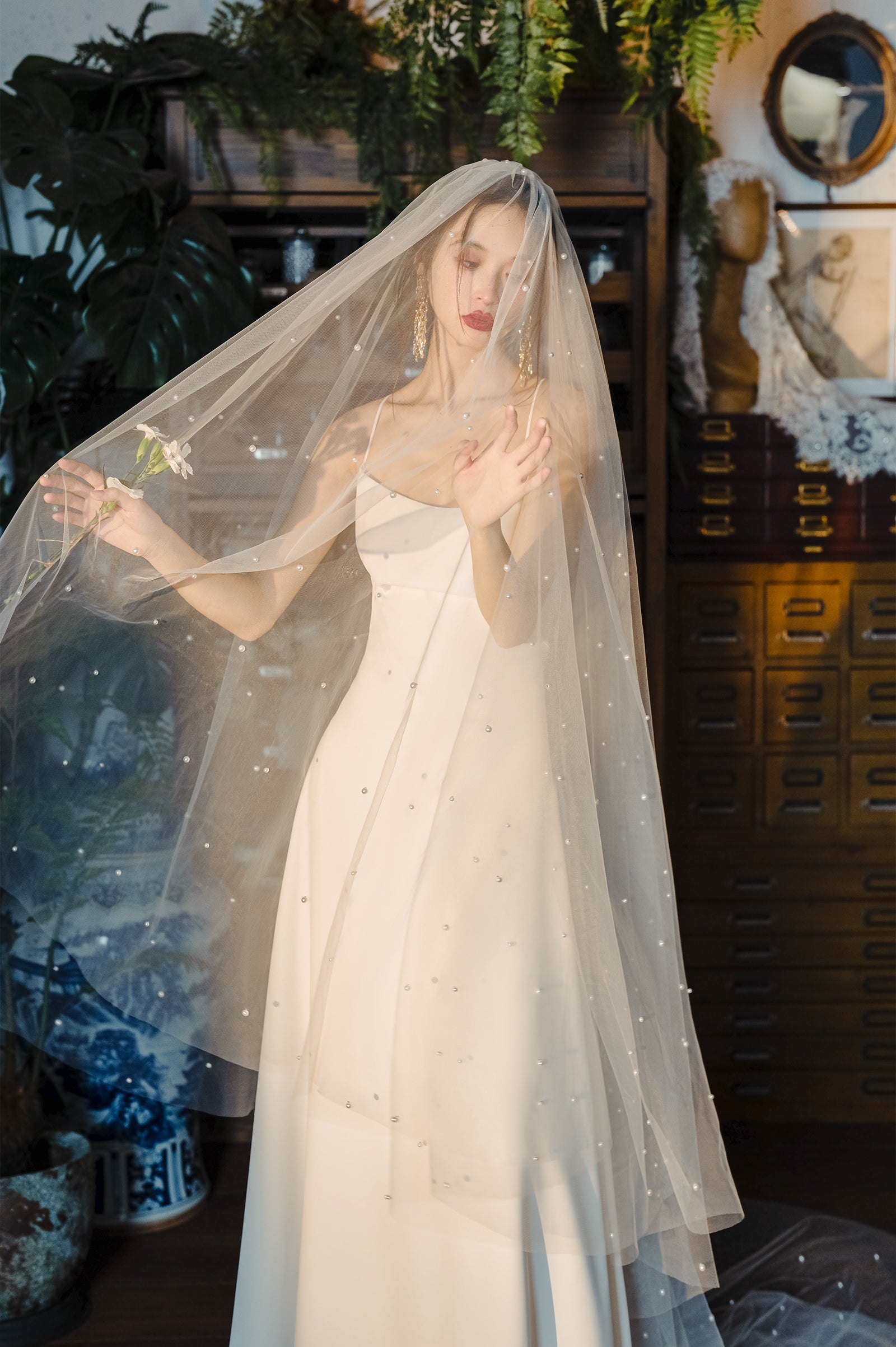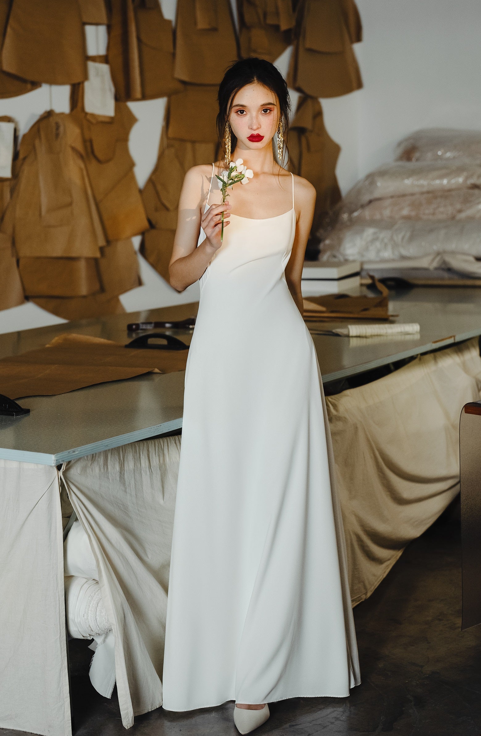 Early Spring 2023 original Straight Shoulder Strap simple wedding bridal dress- Confession