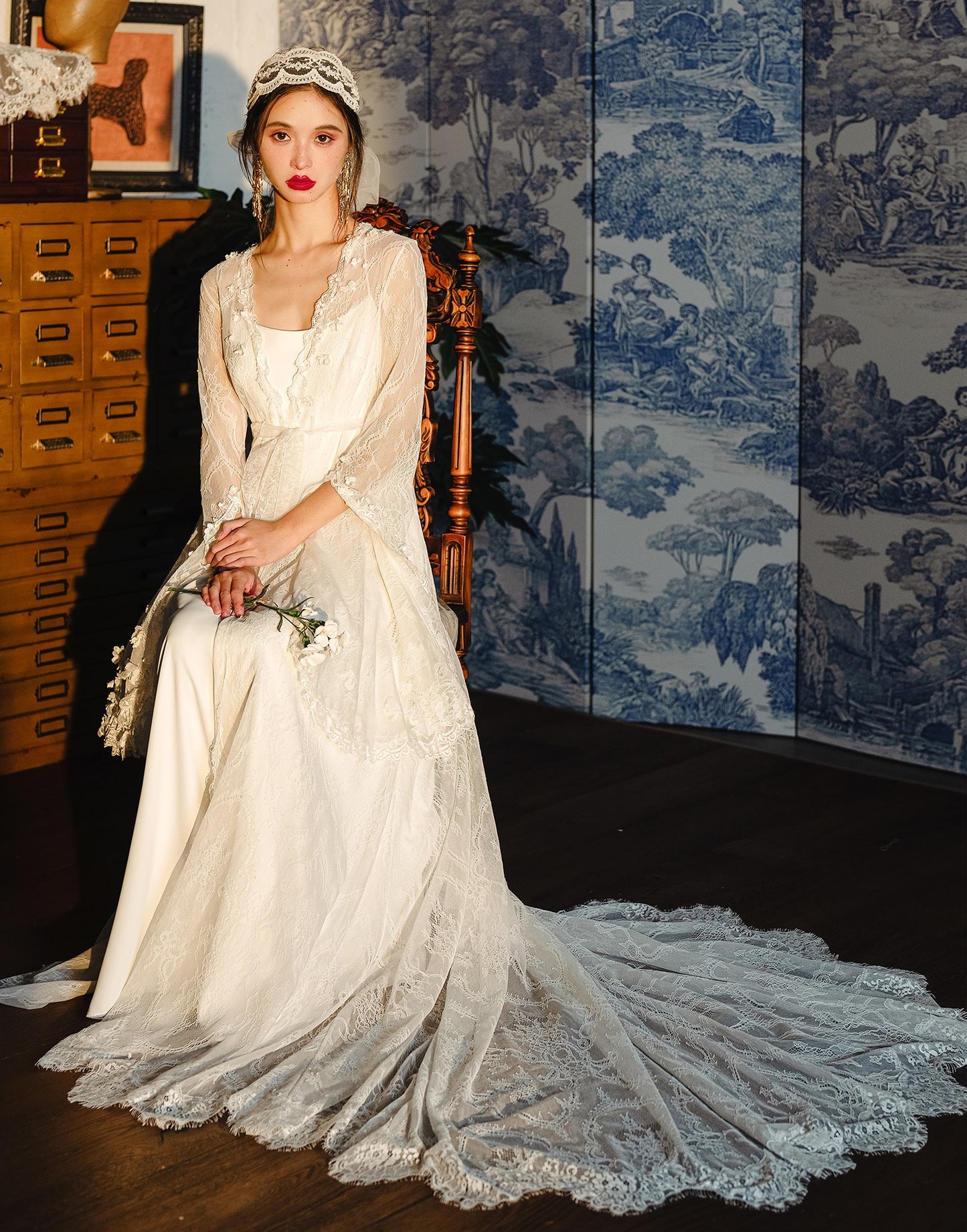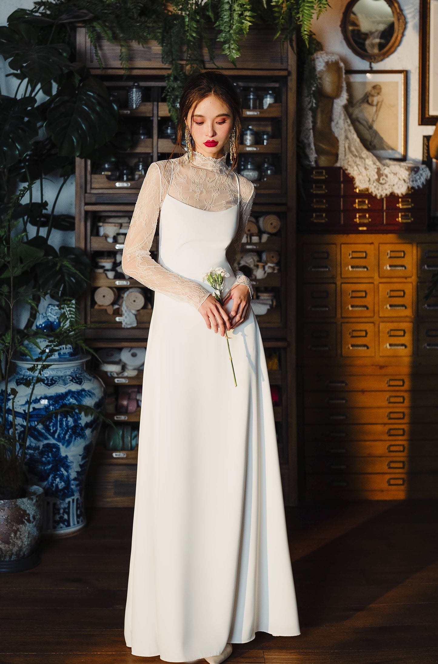 Early Spring original  Straight Shoulder Strap simple wedding bridal dress- Confession
