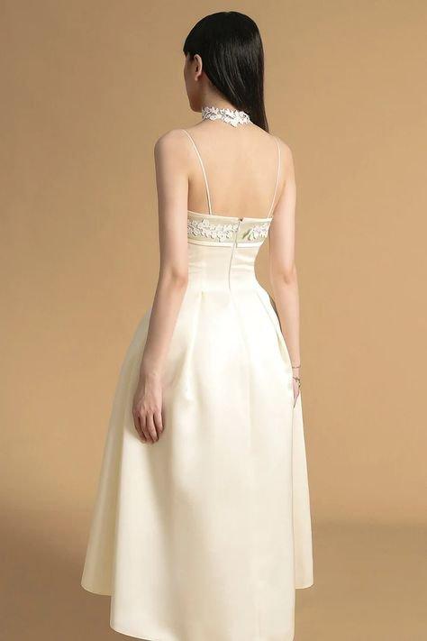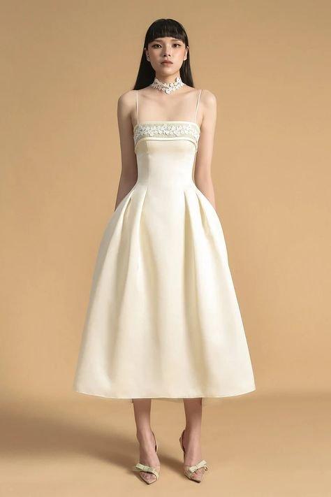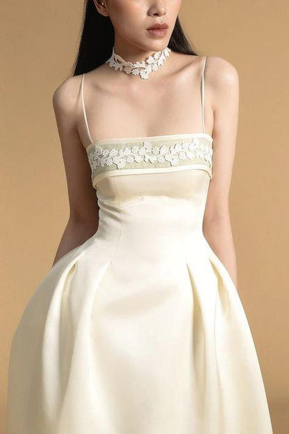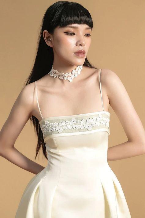 The highlight of the dress is the attached floral pattern line which is very attractive. The square neck design combined with an A-line skirt created a harmonious and elegant total look.