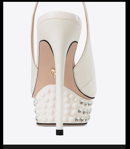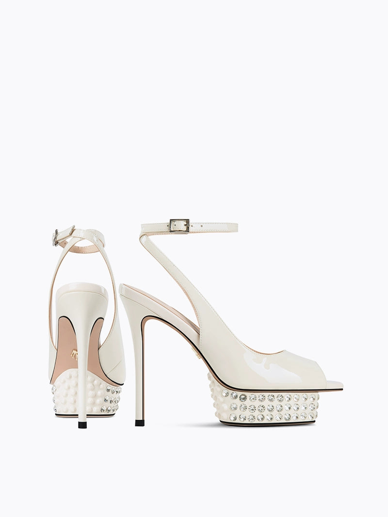 Uniquely crafted for all-day comfort, Fabfei's Milla sandal is a stunning and chic high heel that can instantly elevate any look. Featuring a fish mouth rhinestone design, these elegant and sophisticated sandals are sure to deliver a luxurious experience.
