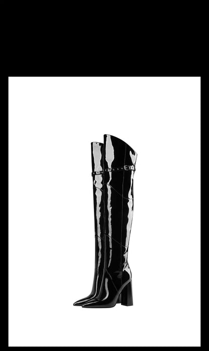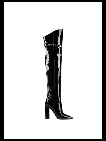 Fabfei patent leather sexy block high heeled over-the-knee boots - Domina
