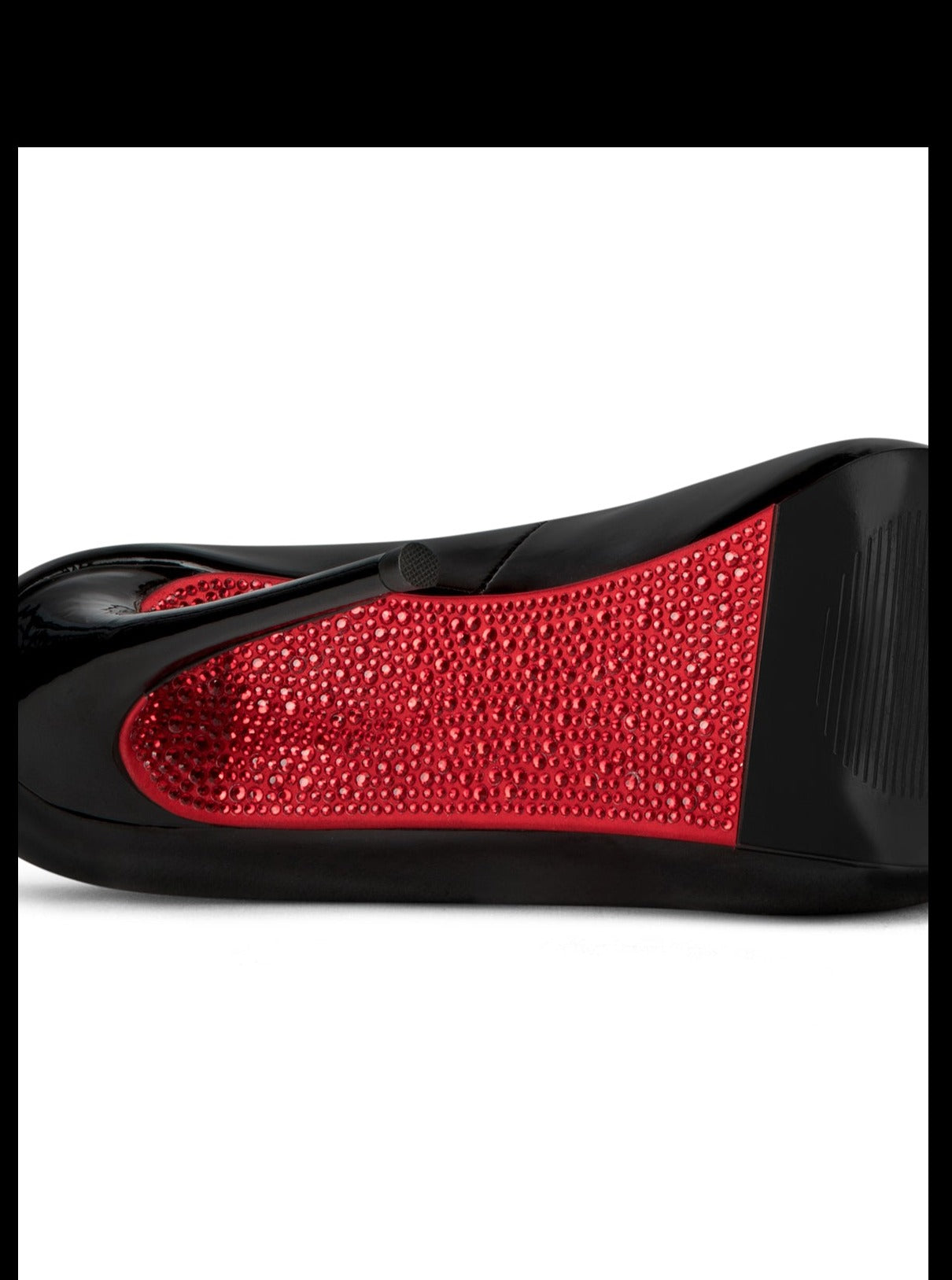 Fabfei red rhinestone heel black patent leather sexy stiletto - Liiooe
