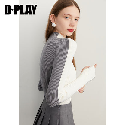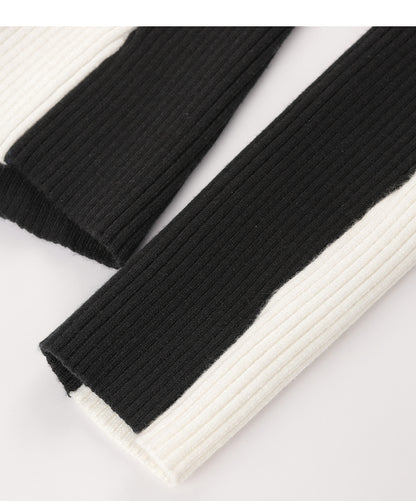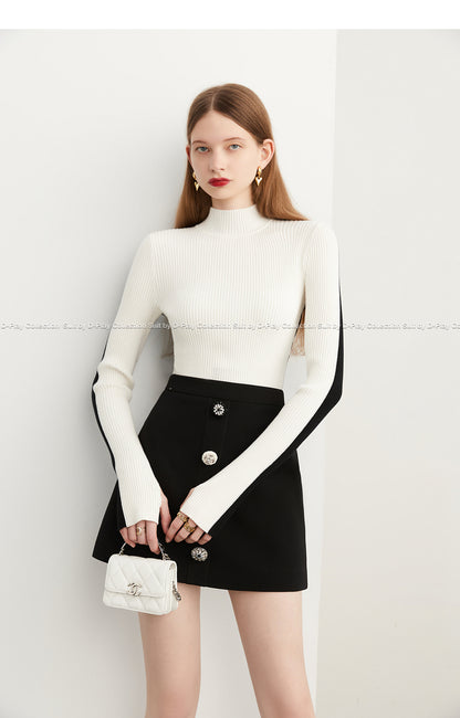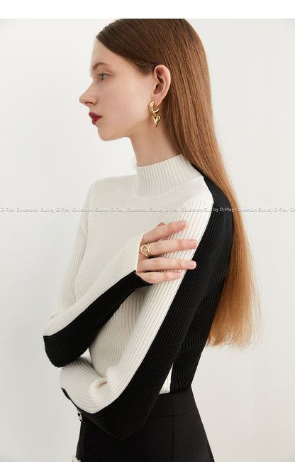 Fall Autumn Black White Color-block High Neck Pullover Sweater -Sposo
