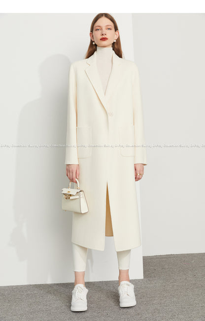 Fall Autumn Cream White Lapel Slit Wide Belt Double Wool Coat - Tianna