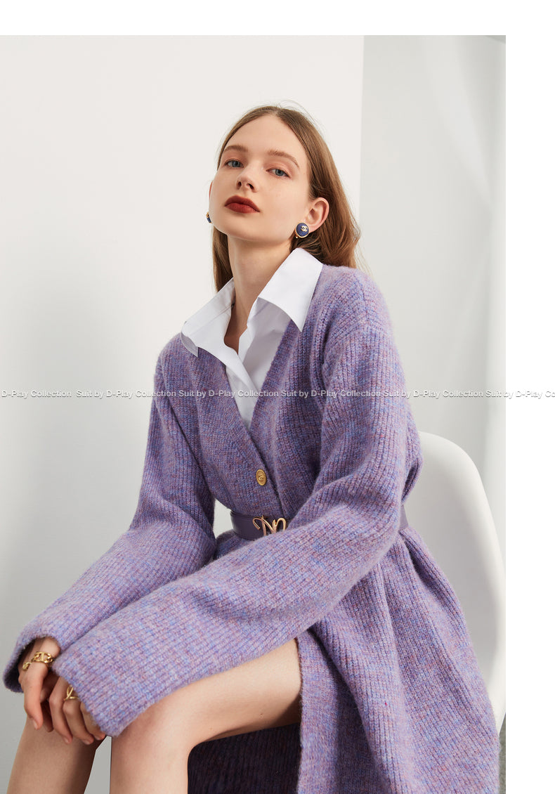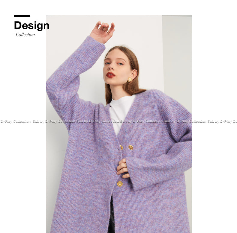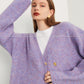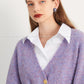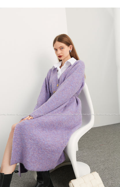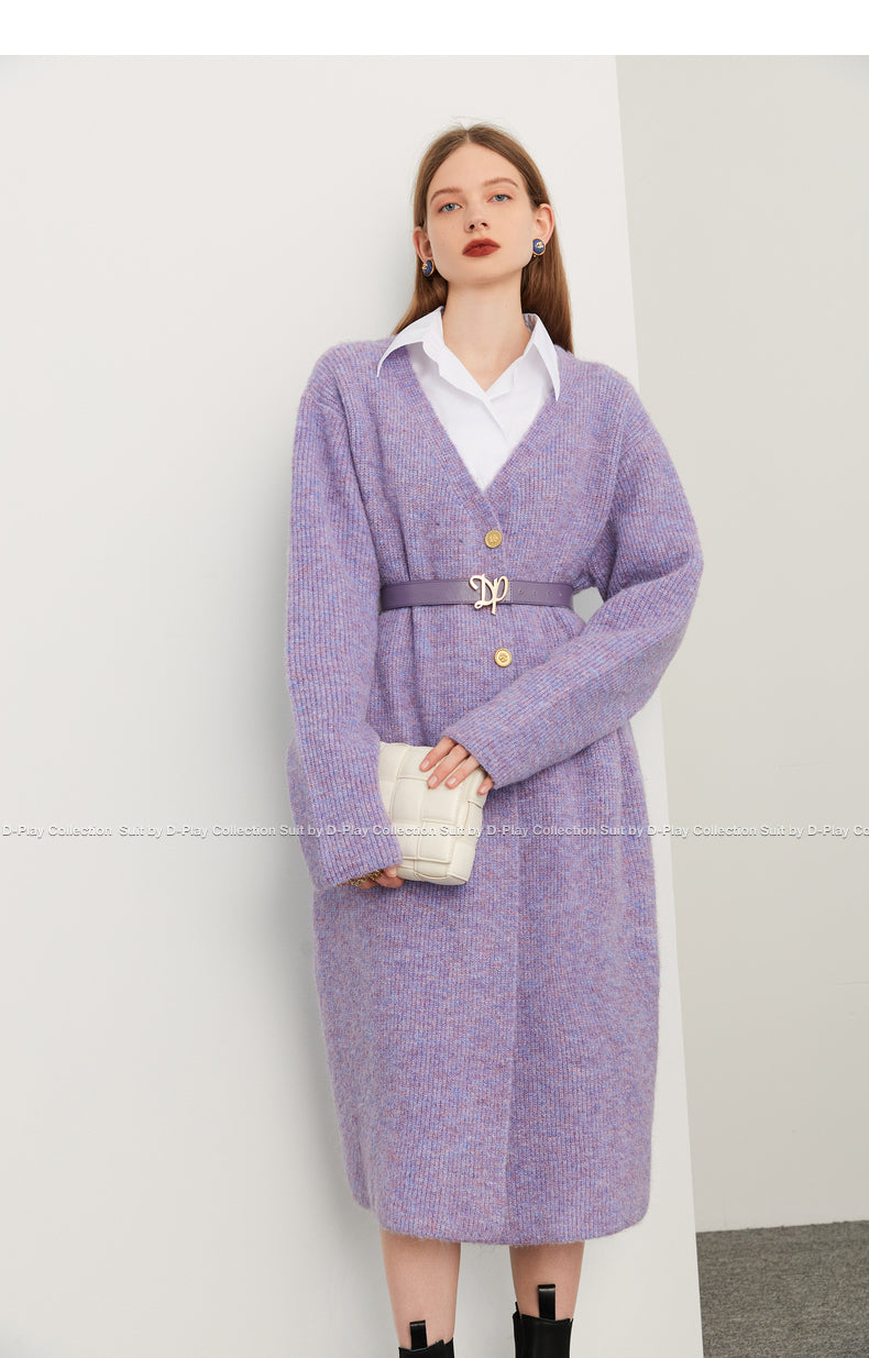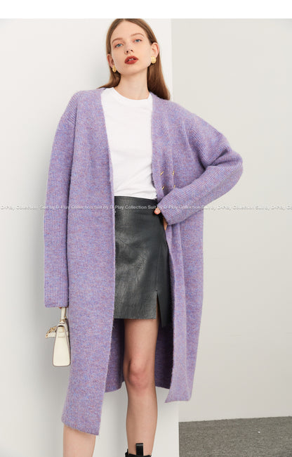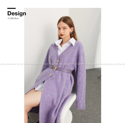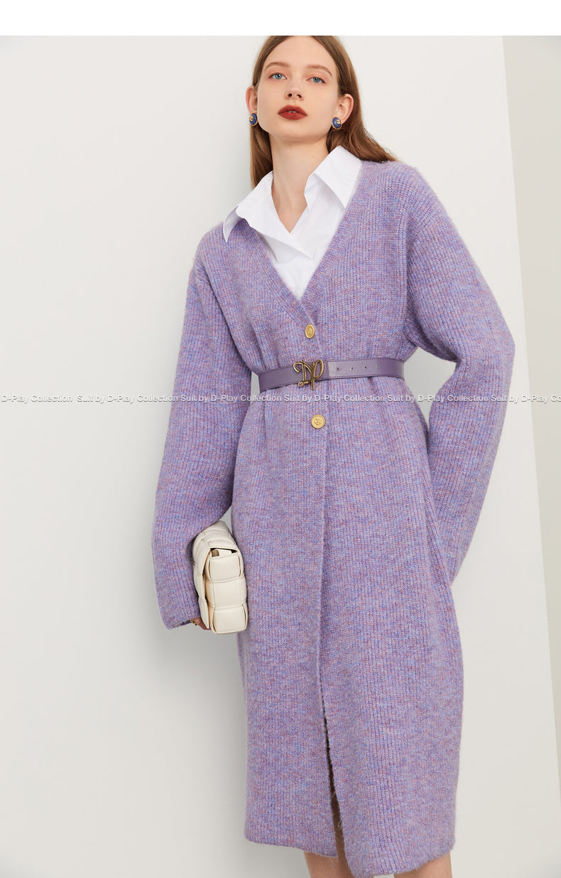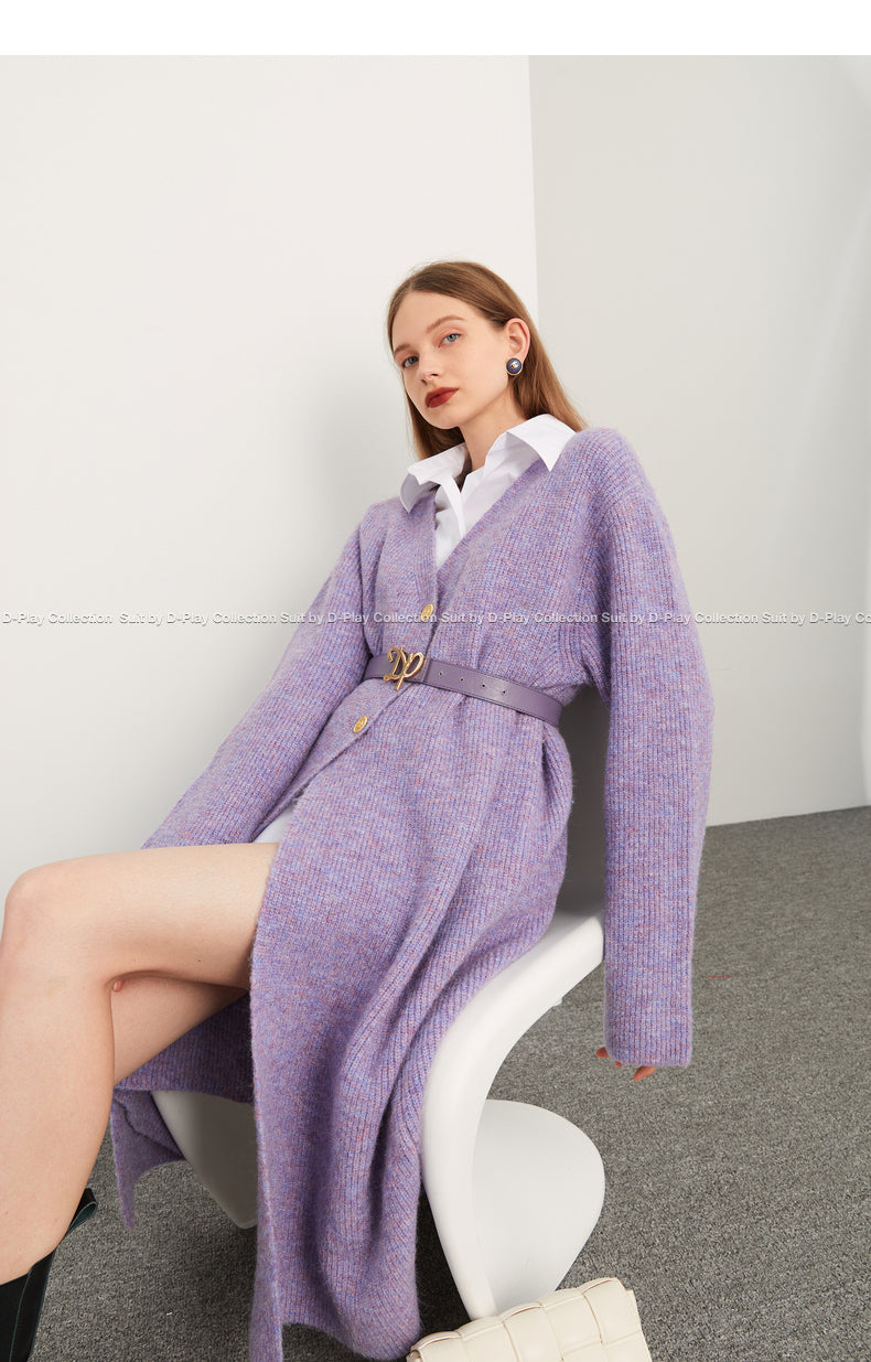 Fall autumn lavender purple double-breasted loose-embossed camellia knit coat - Saie