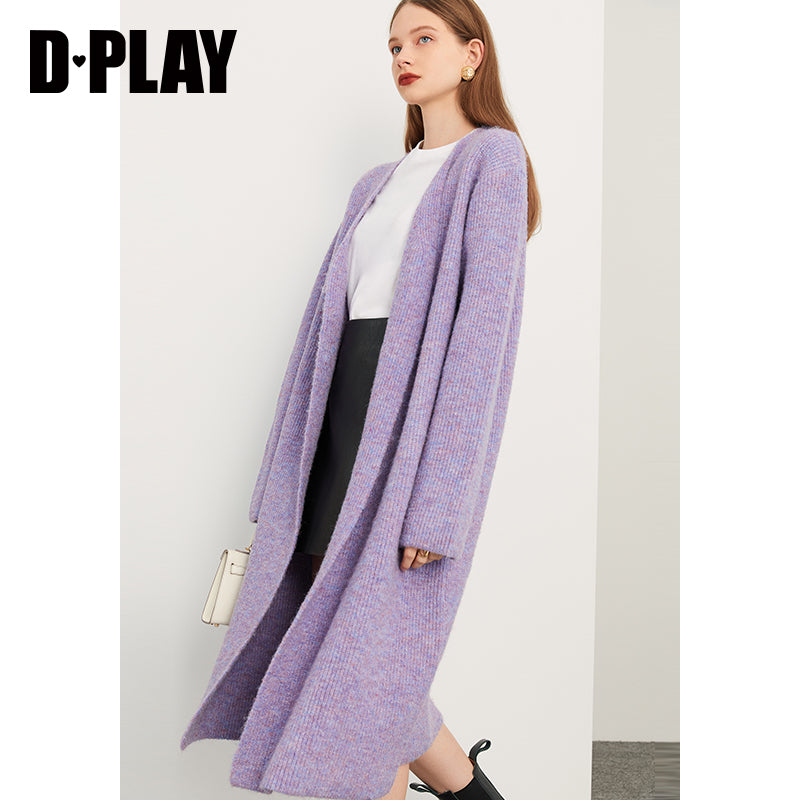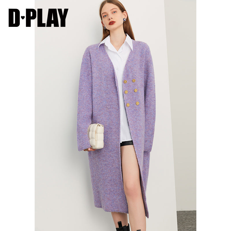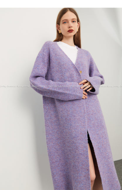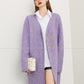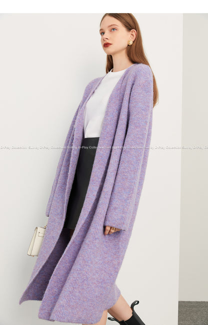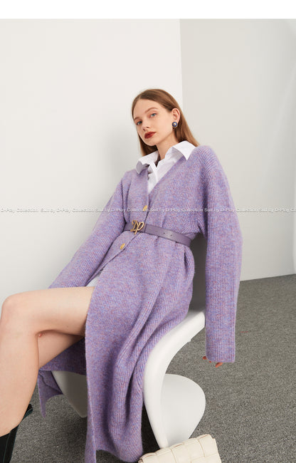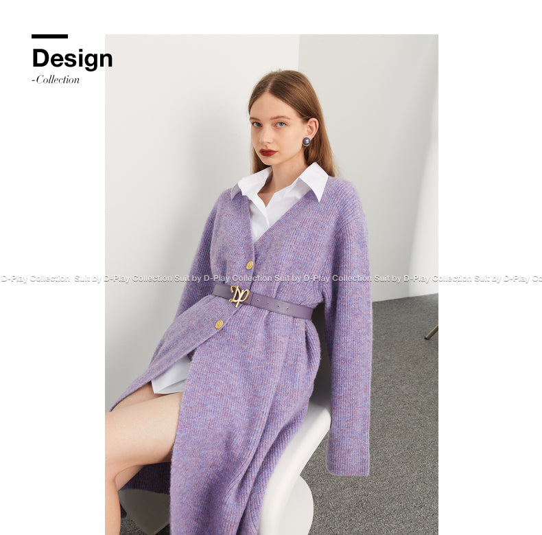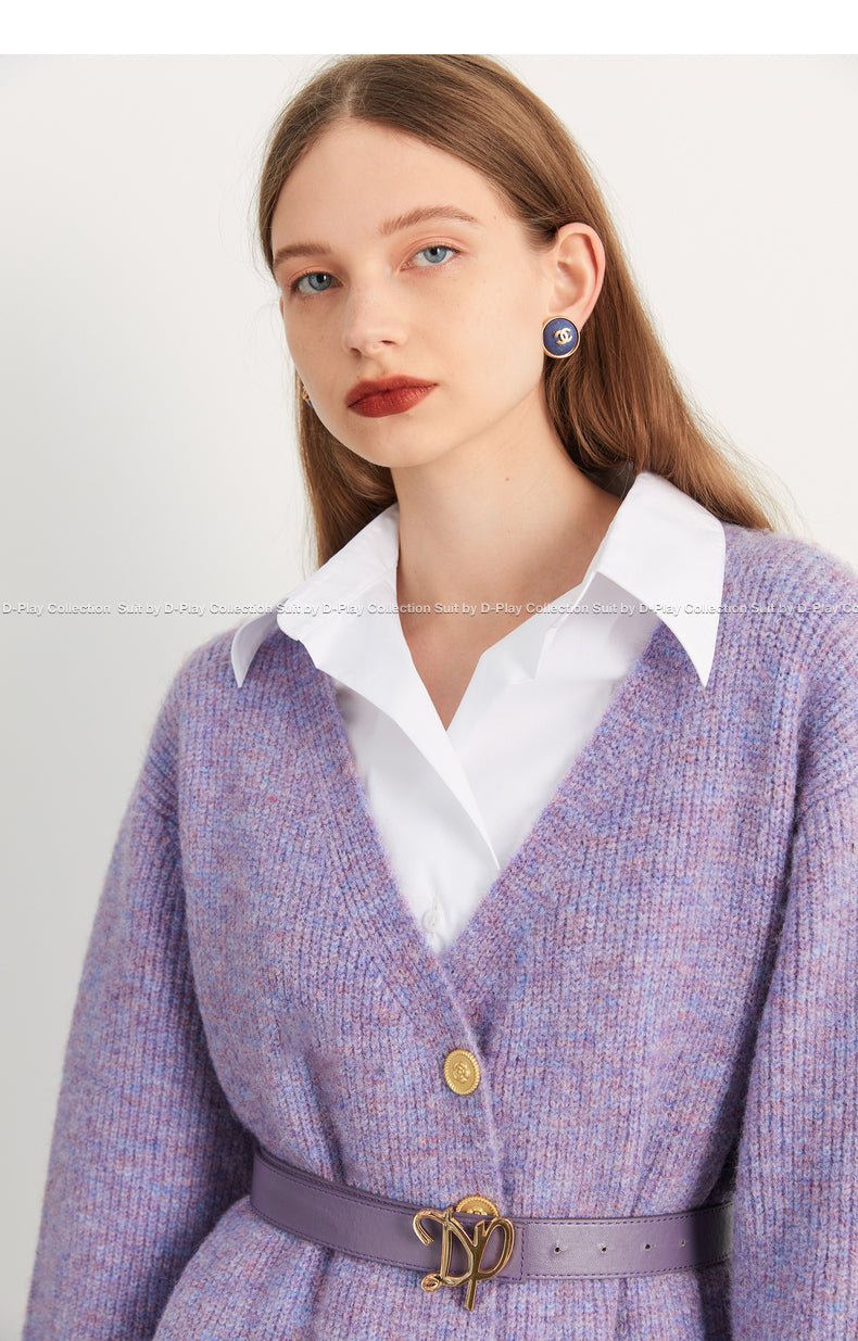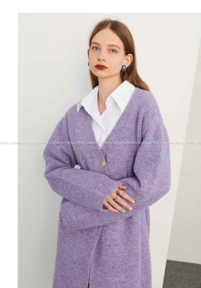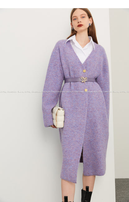 Fall autumn lavender purple double-breasted loose-embossed camellia knit coat - Saie