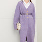 Look your best with the Saie Fall Autumn Lavender Purple Double-breasted coat - an oversized cardigan made from the most luxurious, soft fabric for maximum comfort and femininity. With its gorgeous lilac purple hue and embossed camellia knit, this coat is sure to stand out! Look and feel amazing this season!