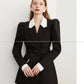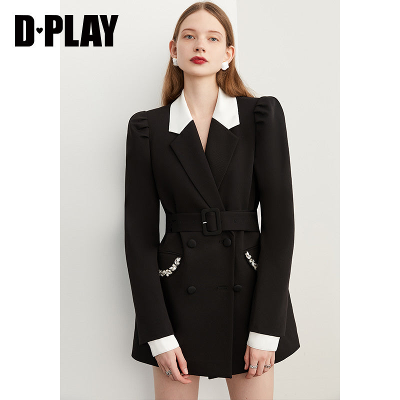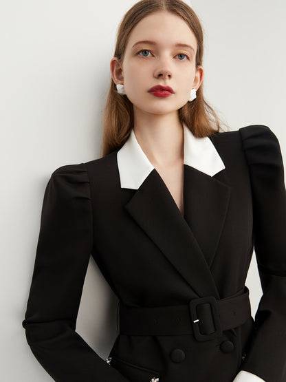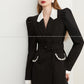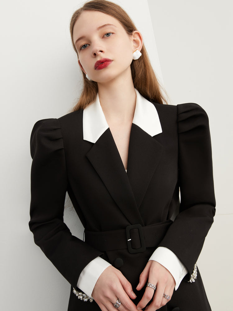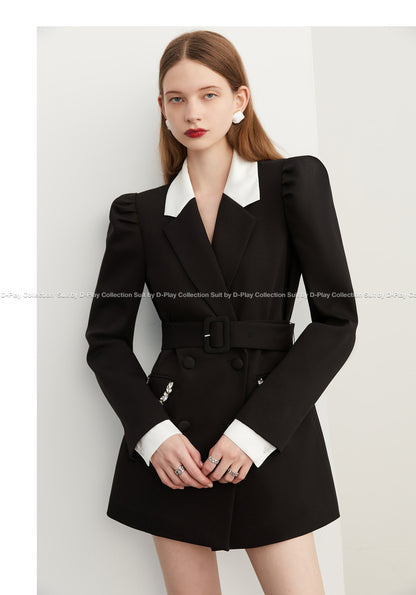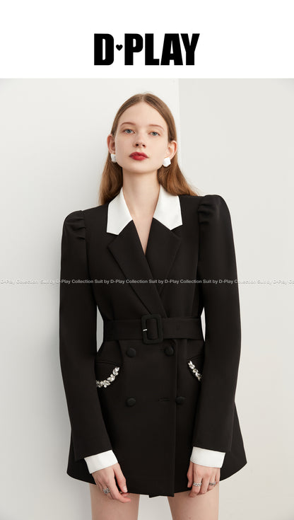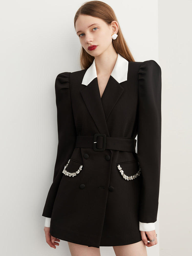 Fall Autumn Premium Black and White Contrast crystal pocket Blazer dress- Darlyn