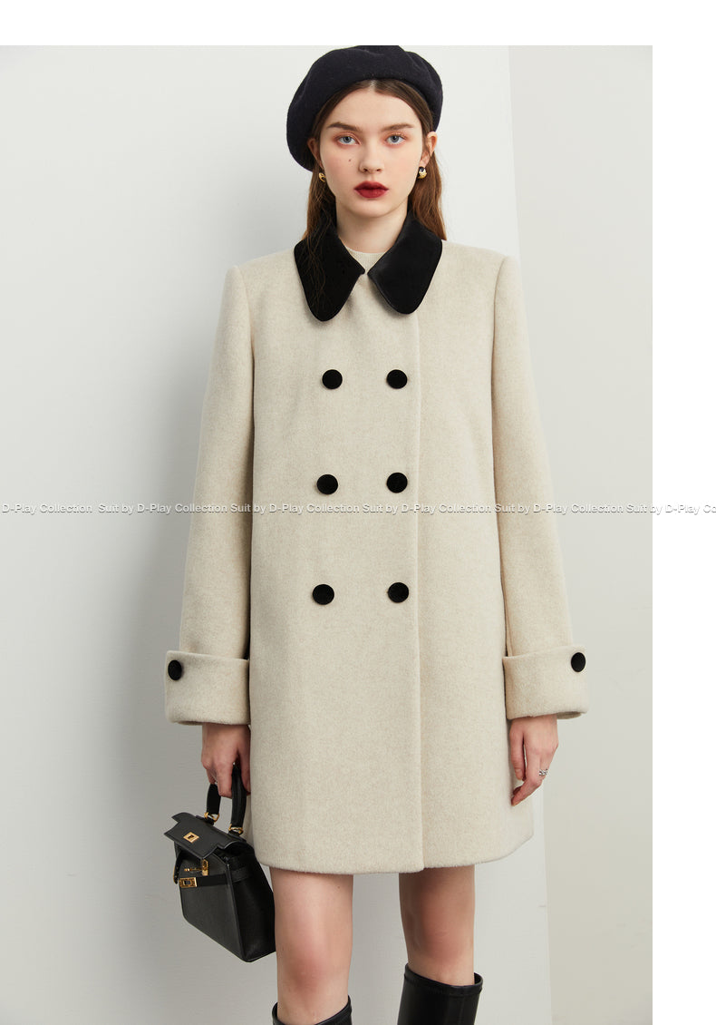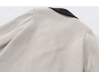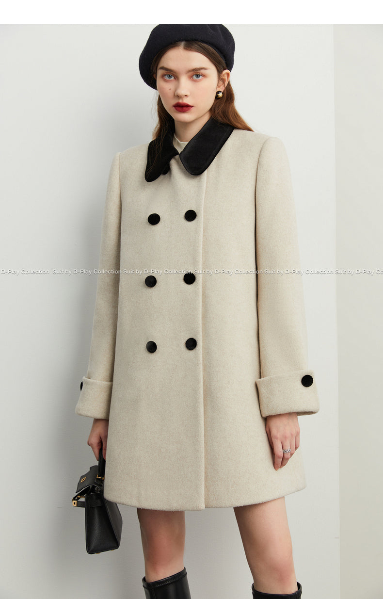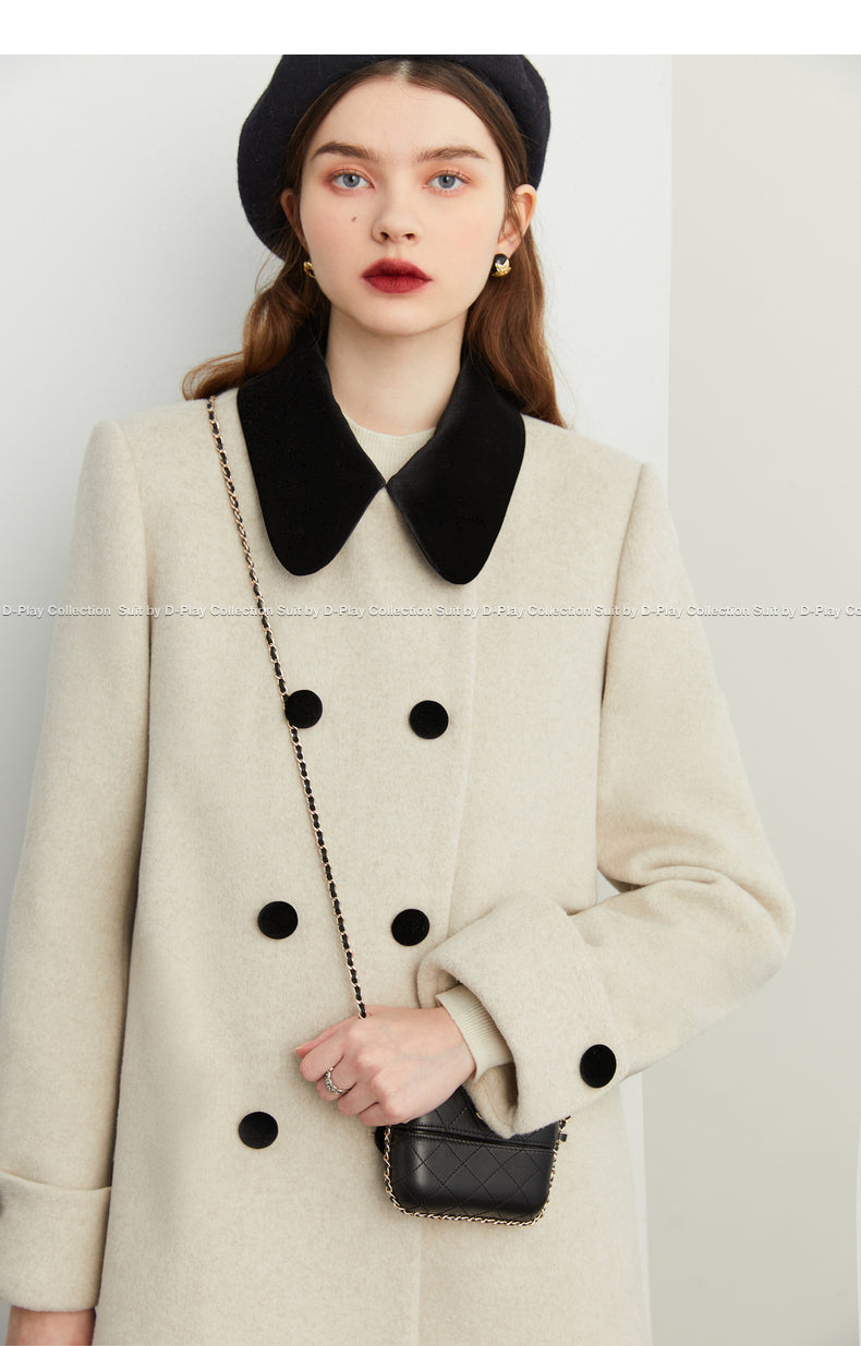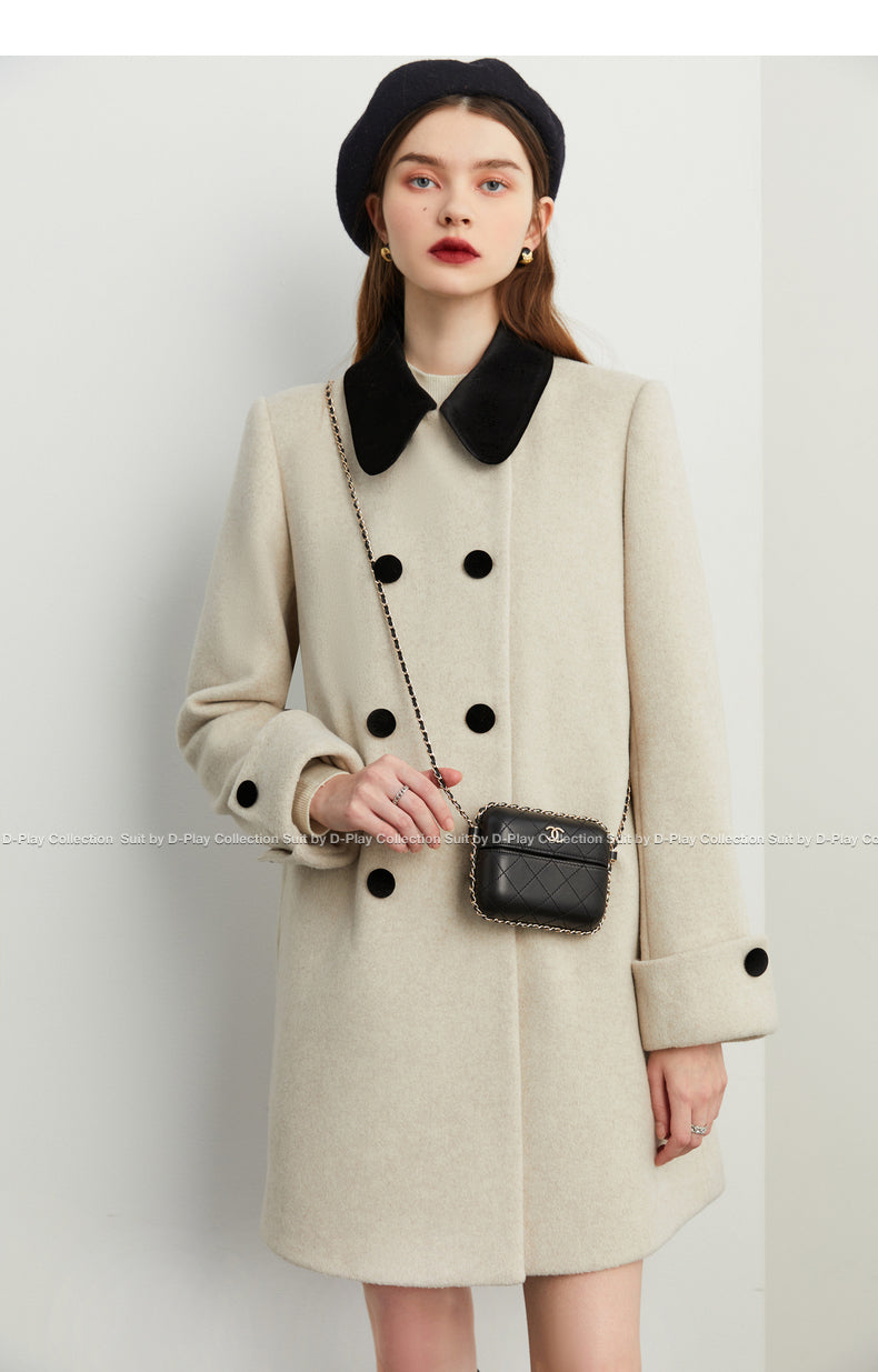 Fall autumn vintage velvet doll collar loose sleeve tweed coat - vivican (v)