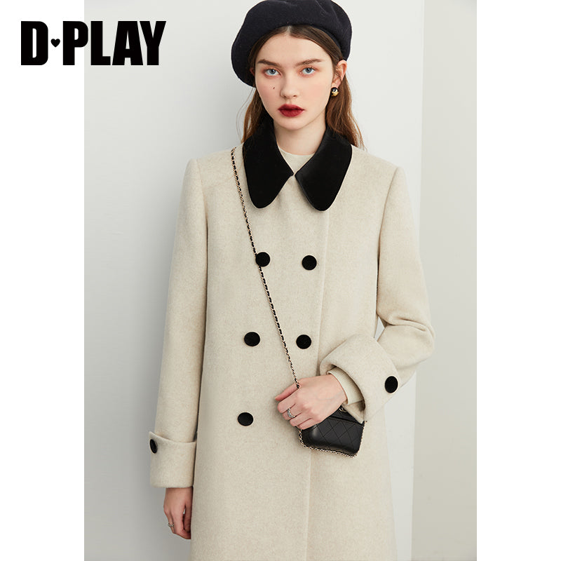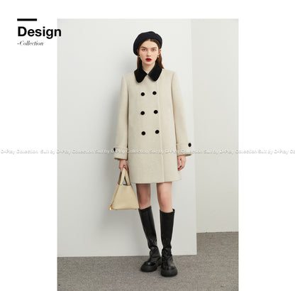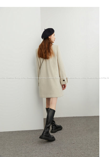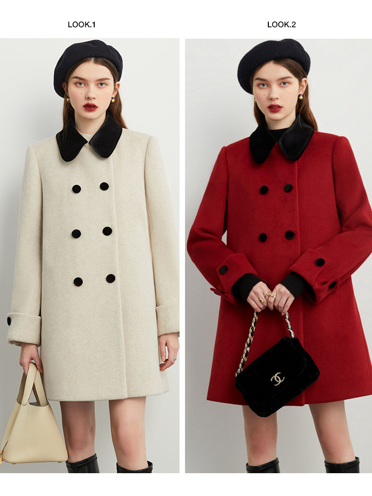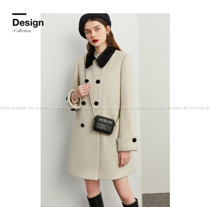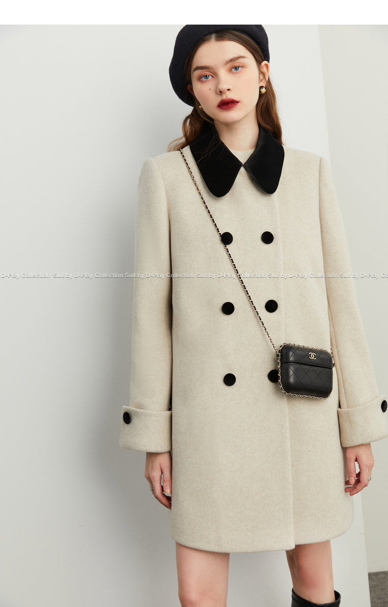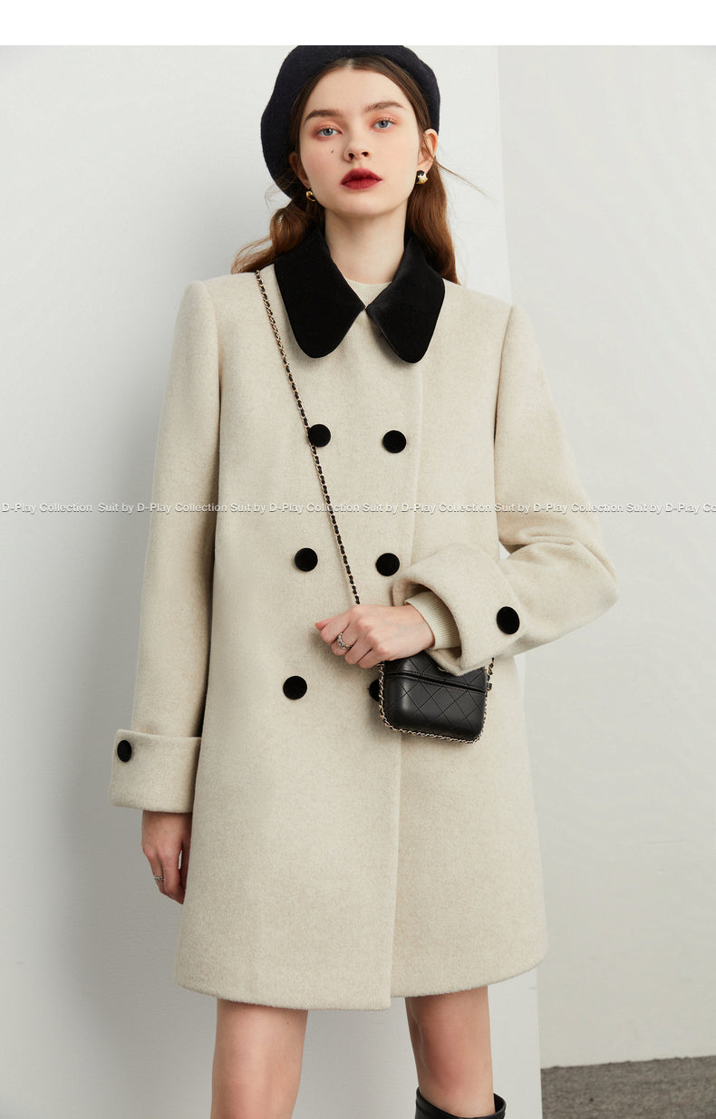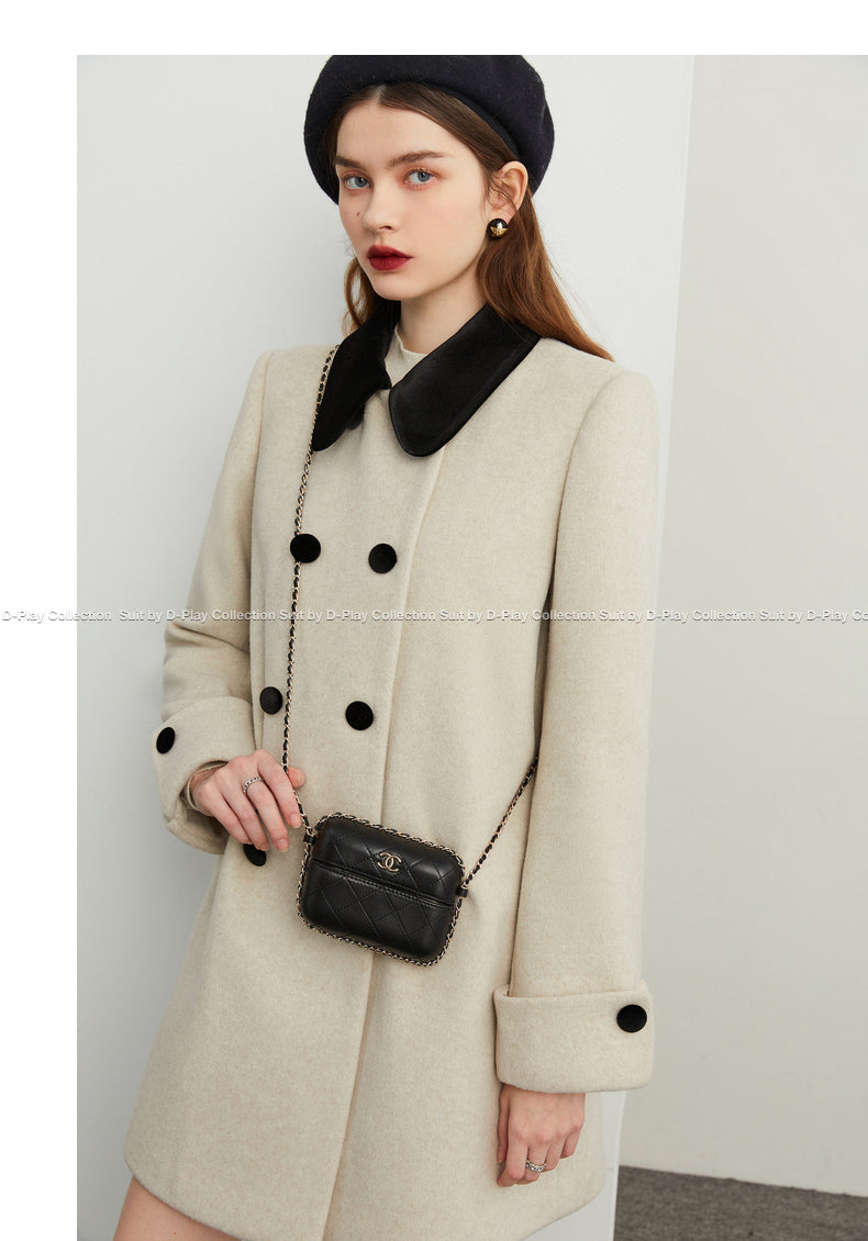 Fall autumn vintage velvet doll collar loose sleeve tweed coat - vivican (v)