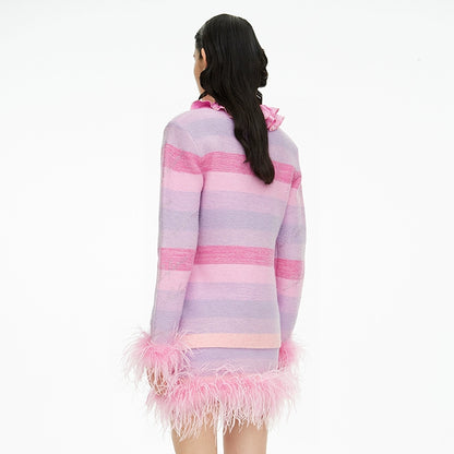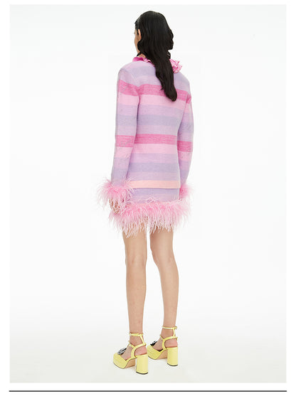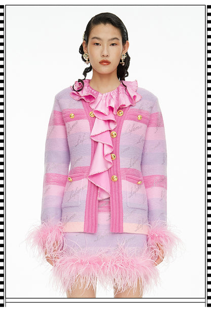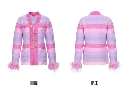FAME luxury Winter pastel gradient striped diamond embellished-knit cardigan - Fimmia