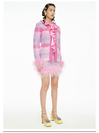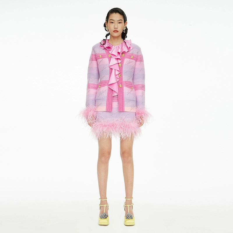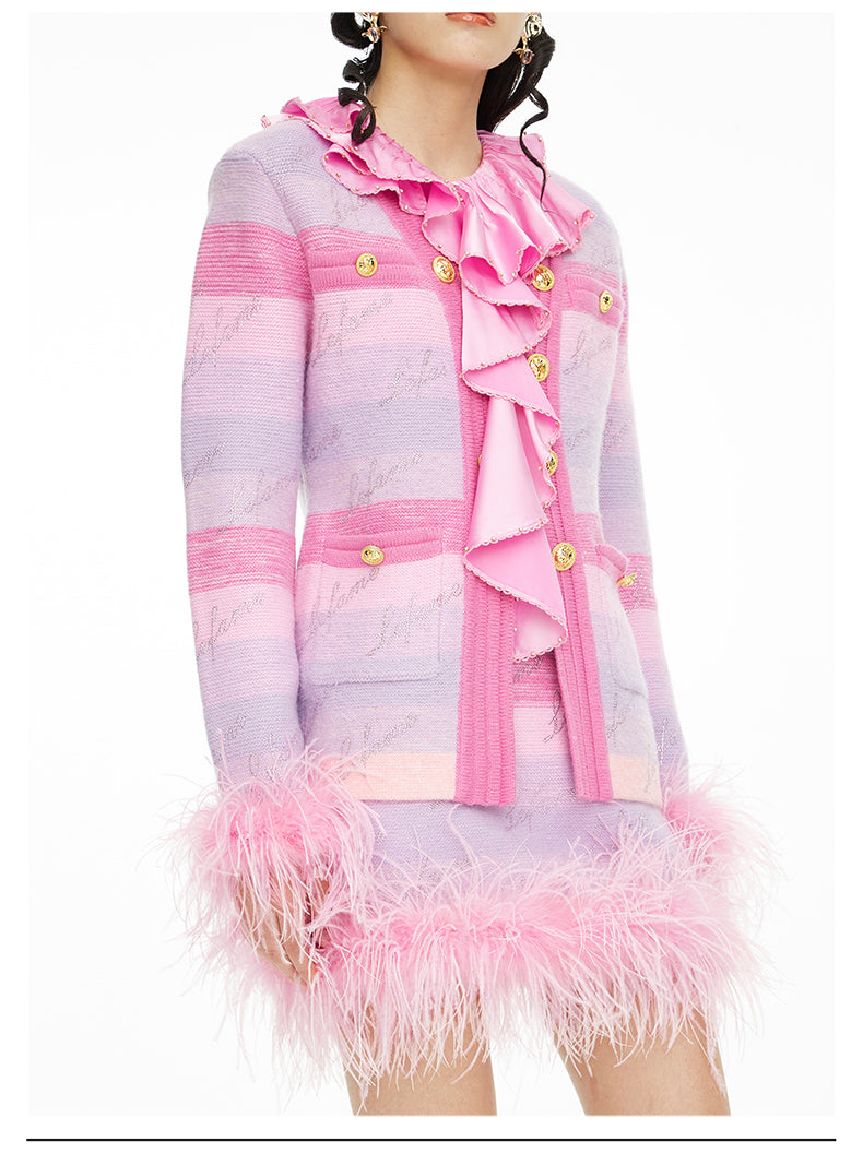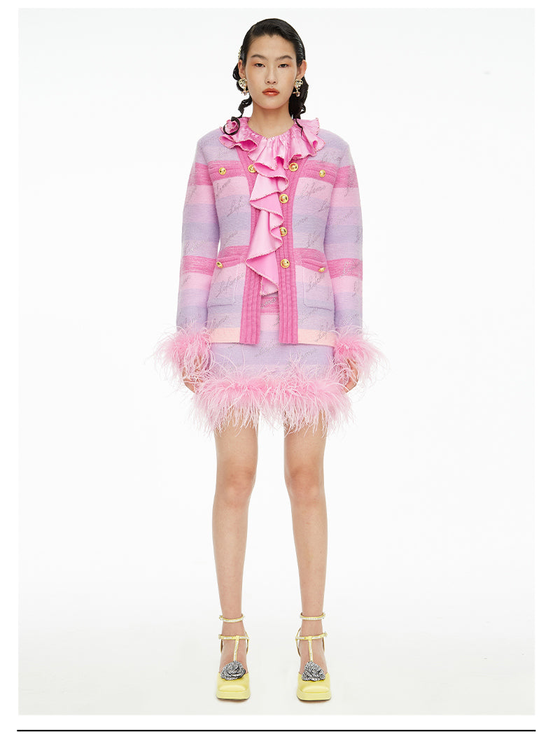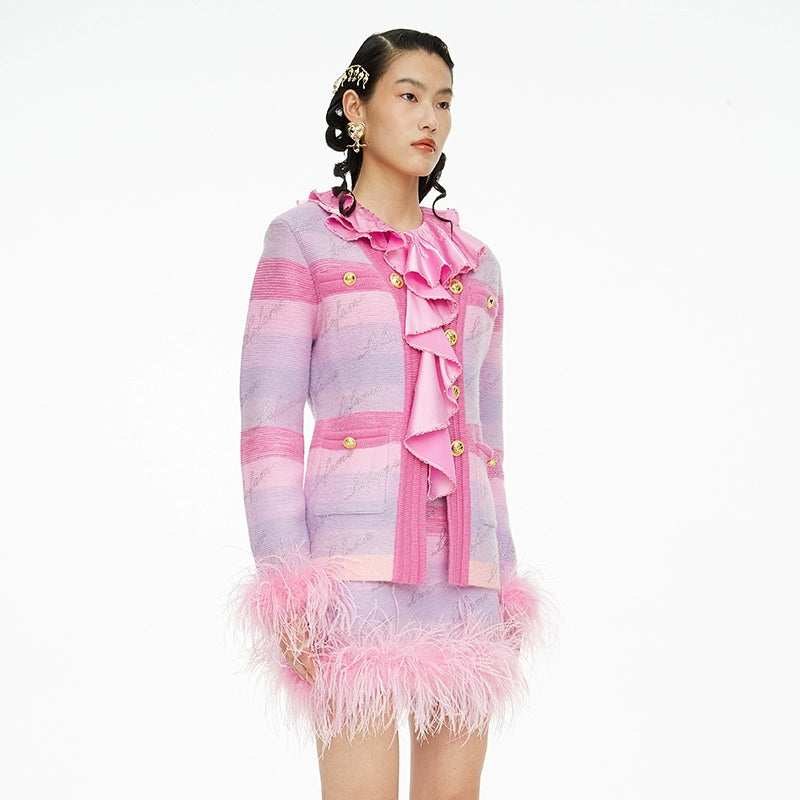 Fimmia's FAME cardigan adds a chic and fashionable look to any autumn wardrobe. Its luxurious winter pastel gradient offers a subtle sophistication, while the striped diamond embellishments exude class and style. Perfect for creating a timeless and elegant appearance.