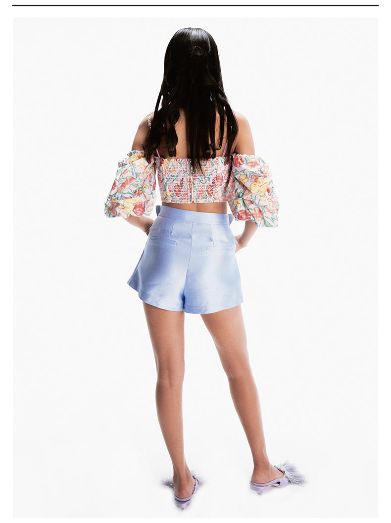 Look the part this fall season with FAME's Salima shorts. Crafted with a chic and girly edge, these luxury shorts feature a unique bow detail encrusted with crystal elements. A kaleidoscope of color lends sophistication to this colorful and trending style while a sexy silhouette adds a touch of allure. Put the finishing touches on your autumn wardrobe with these statement-making shorts.