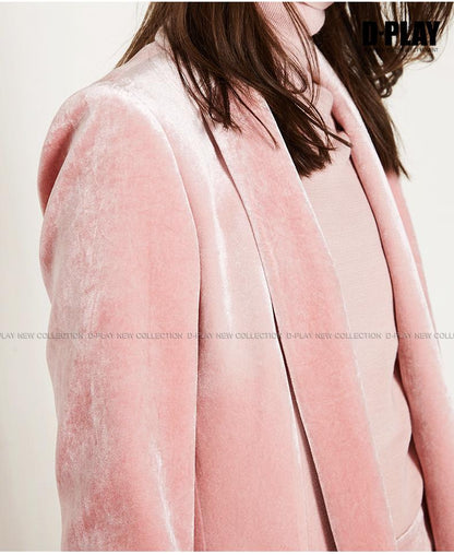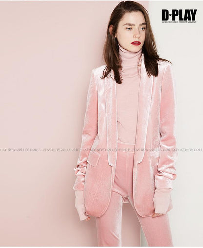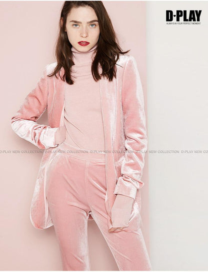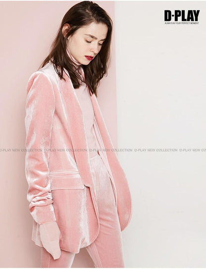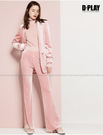 FINAL SALE Pink velvet suit + bell-bottoms trousers two-piece suit- Hitas