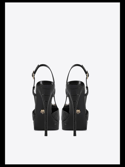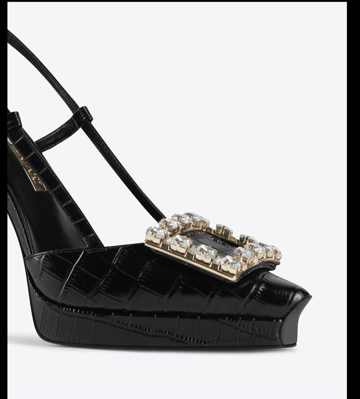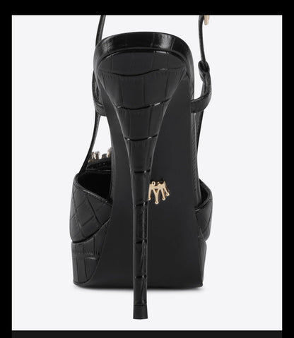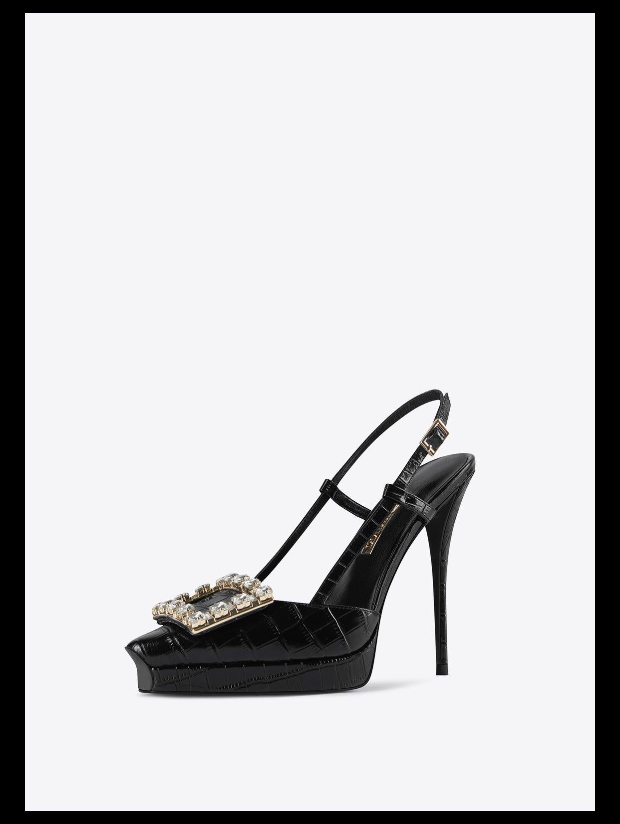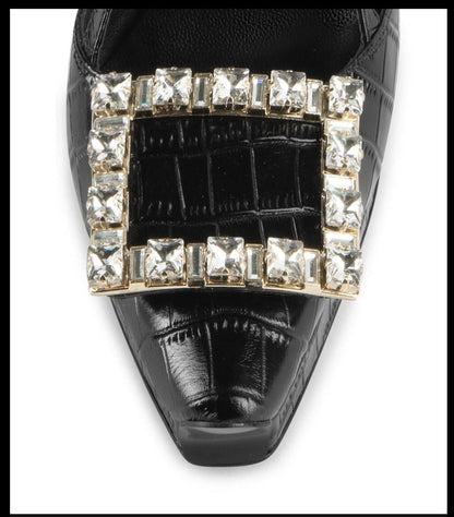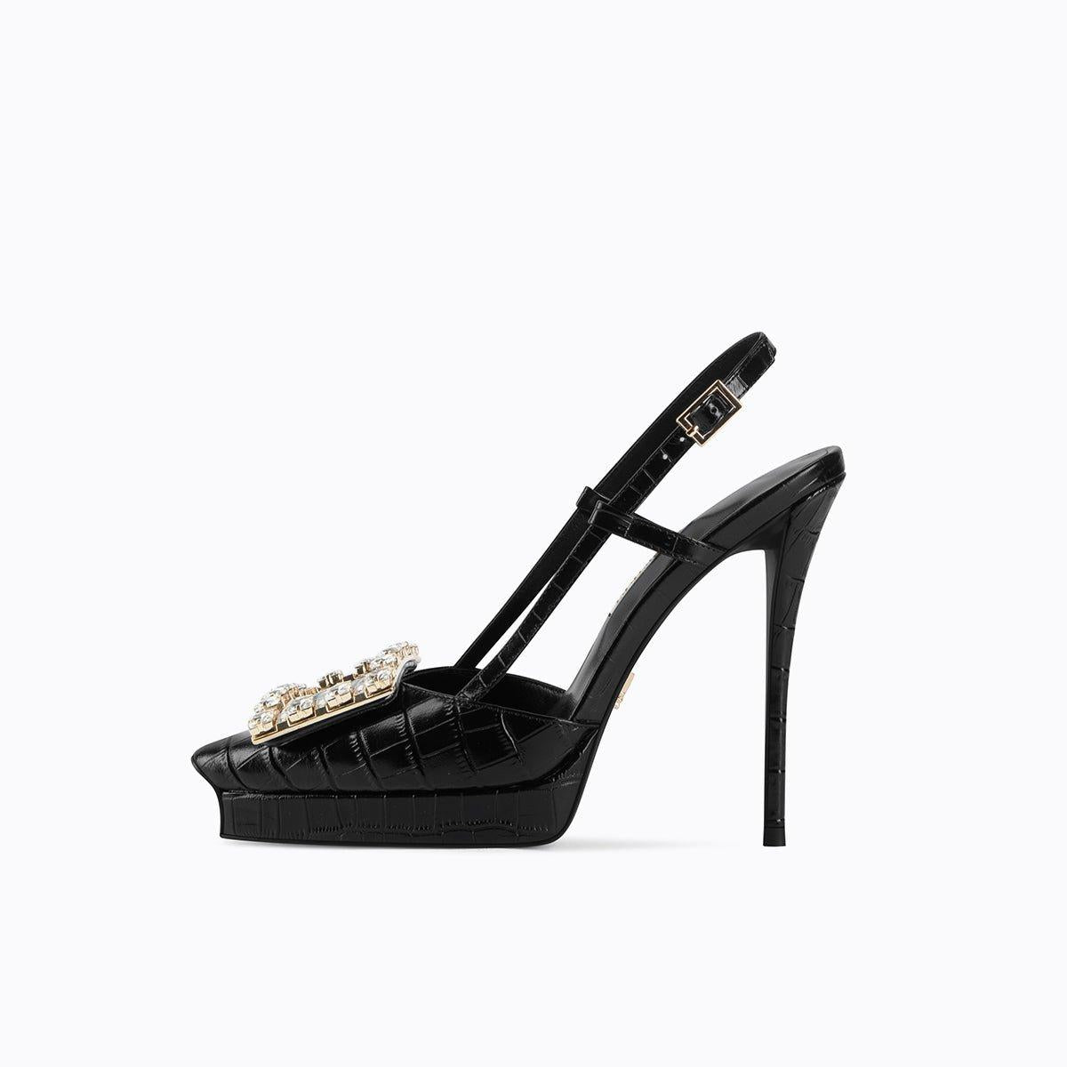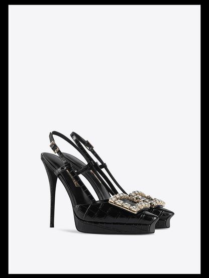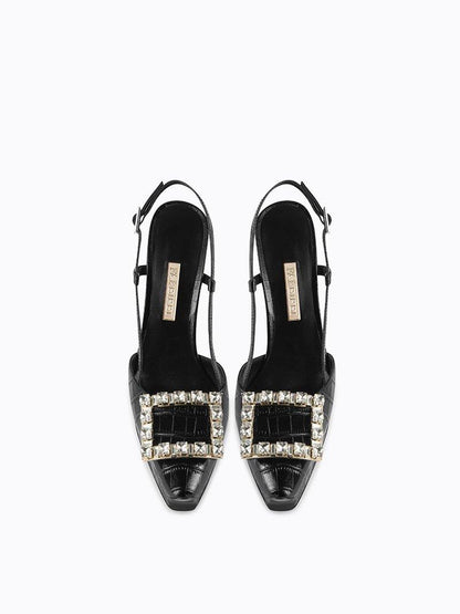 FINAL SALE Rhinestone square buckle stiletto high heel sling back black shoes pumps - Tabitha