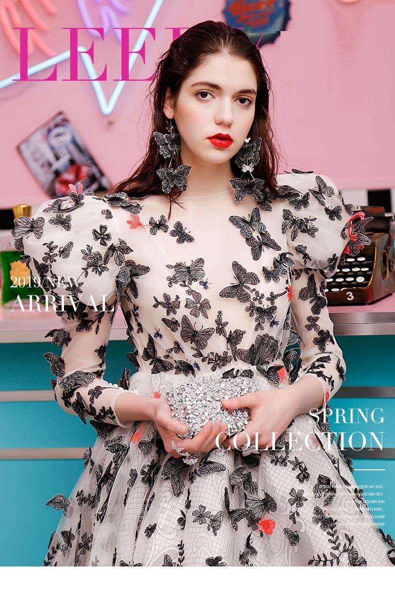 Heavy Industry Series Embroidered Dress train butterfly embroidery Trailing Designer Classical custom evening wedding dress gown - Aiva