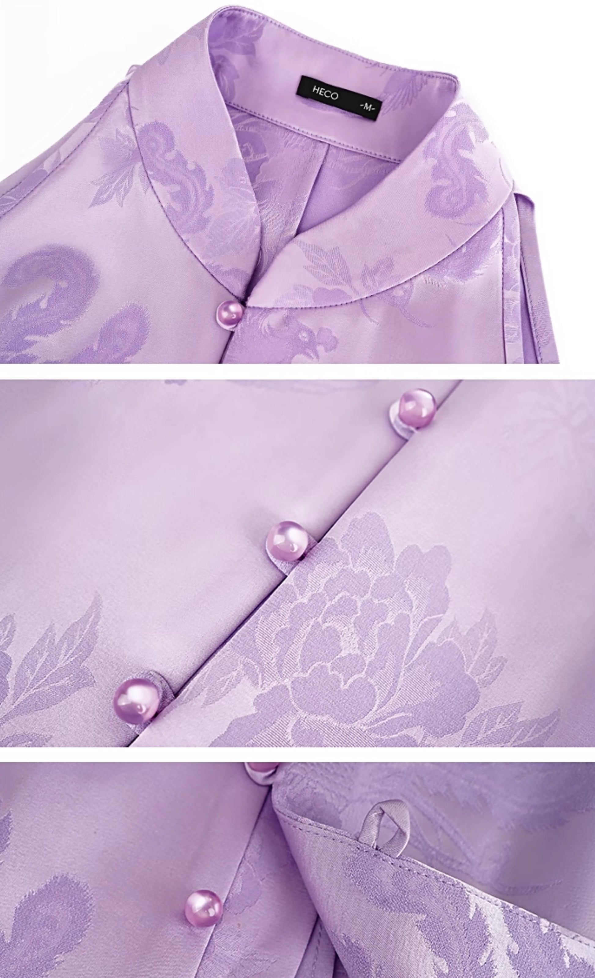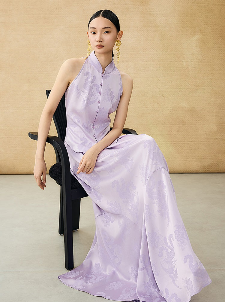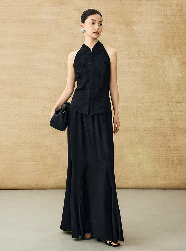 This expertly tailored vest features a stand-up Mandarin collar and a sleek sleeveless design, crafted from high-quality Chinese acetate jacquard fabric. Its single-line, multi-button front adds refined structure while emphasizing a clean, traditional aesthetic. Ideal for layering, this vest balances cultural heritage with modern sophistication.