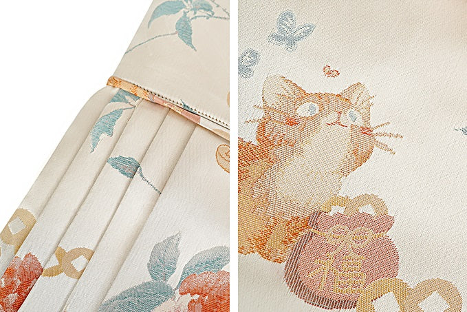 This HECO Chinese Lucky Cat Colored Woven Jacquard Horse Face Skirt features a long silhouette crafted from intricate jacquard fabric, combining cultural symbolism with refined texture. Designed with a high waist and a self-tie belt, it offers adjustable comfort and a flattering fit. The exquisite jacquard weave highlights detailed patterns that elevate its artisanal appeal, making it a sophisticated statement piece for those seeking both style and craftsmanship.