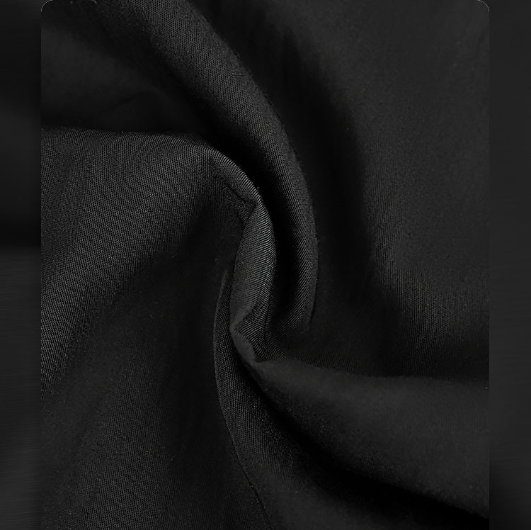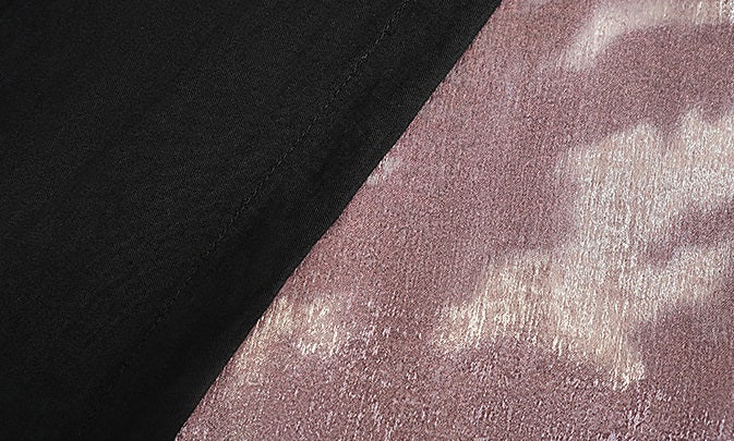 This high-waisted, A-line black skirt features a floral pattern and a stylish slit, combining classic shape with modern detail. Its flowing drape enhances movement while maintaining a slimming silhouette, making it a versatile piece for both casual and dressier occasions.