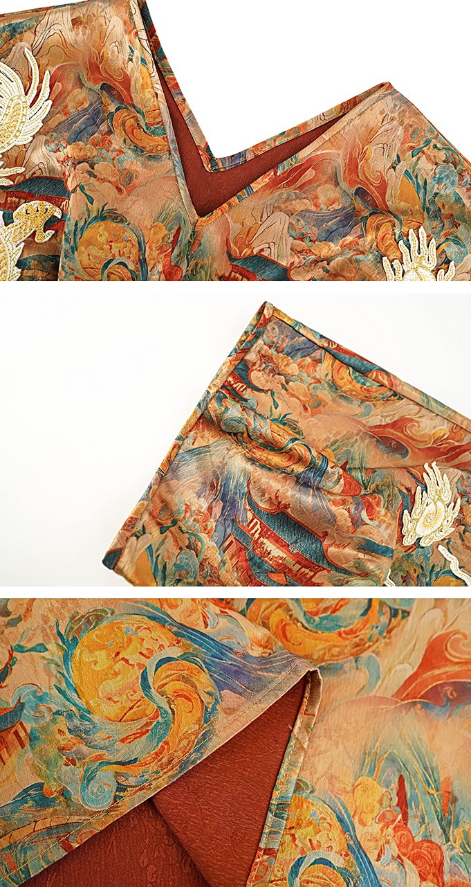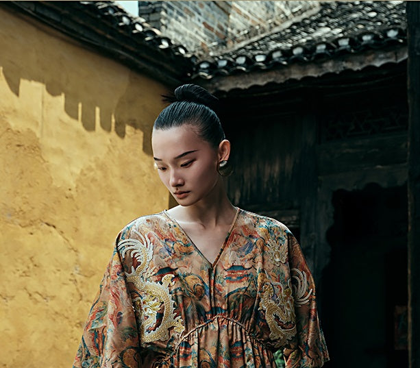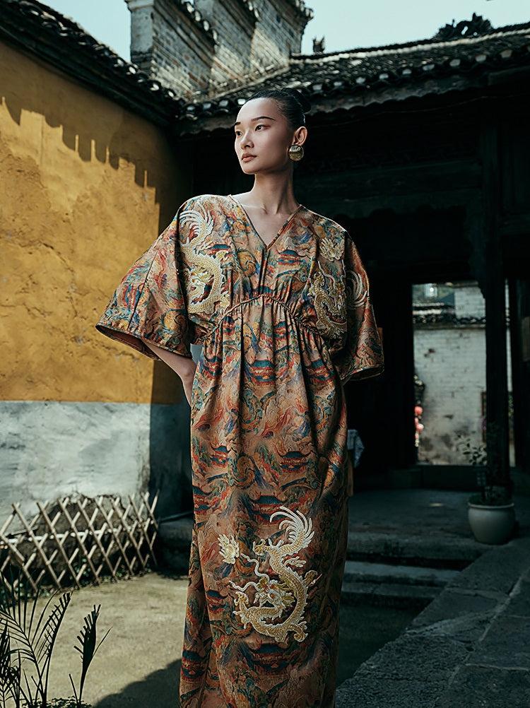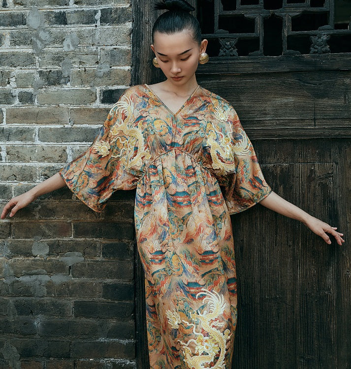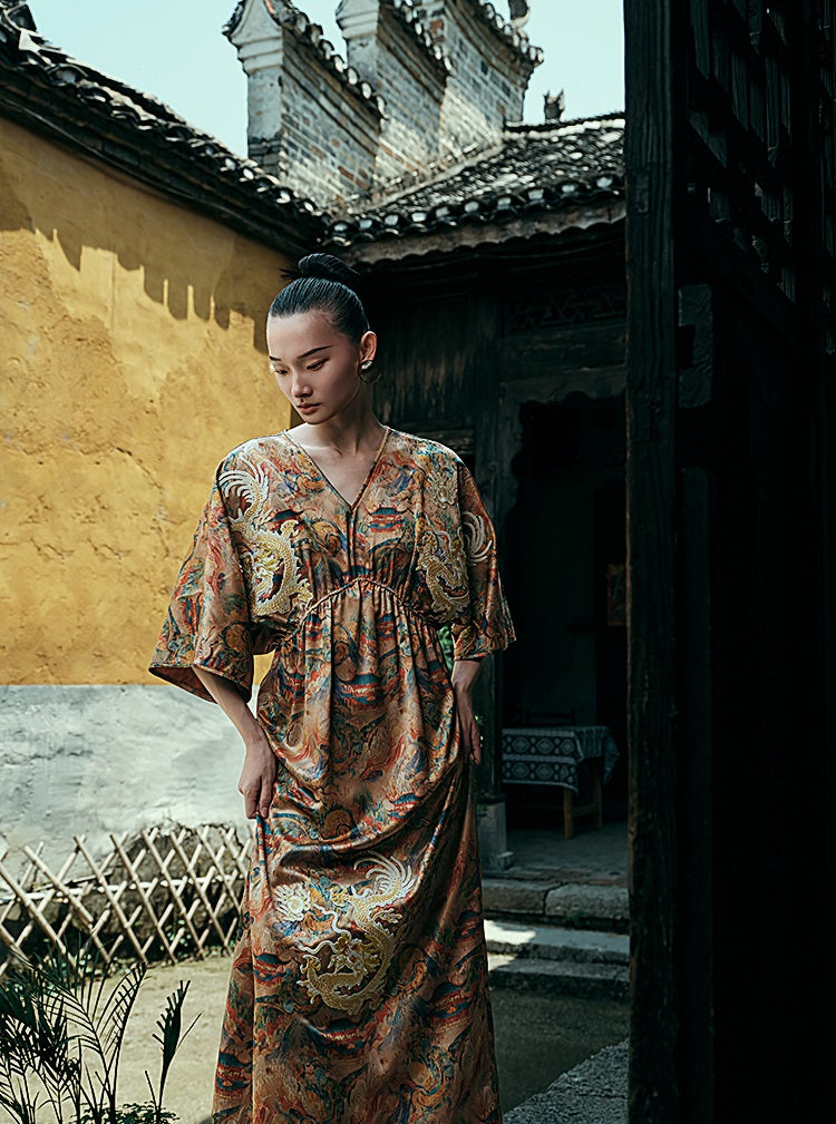 HECO Chinese Waist Cinched V-Neck Dress - QIN