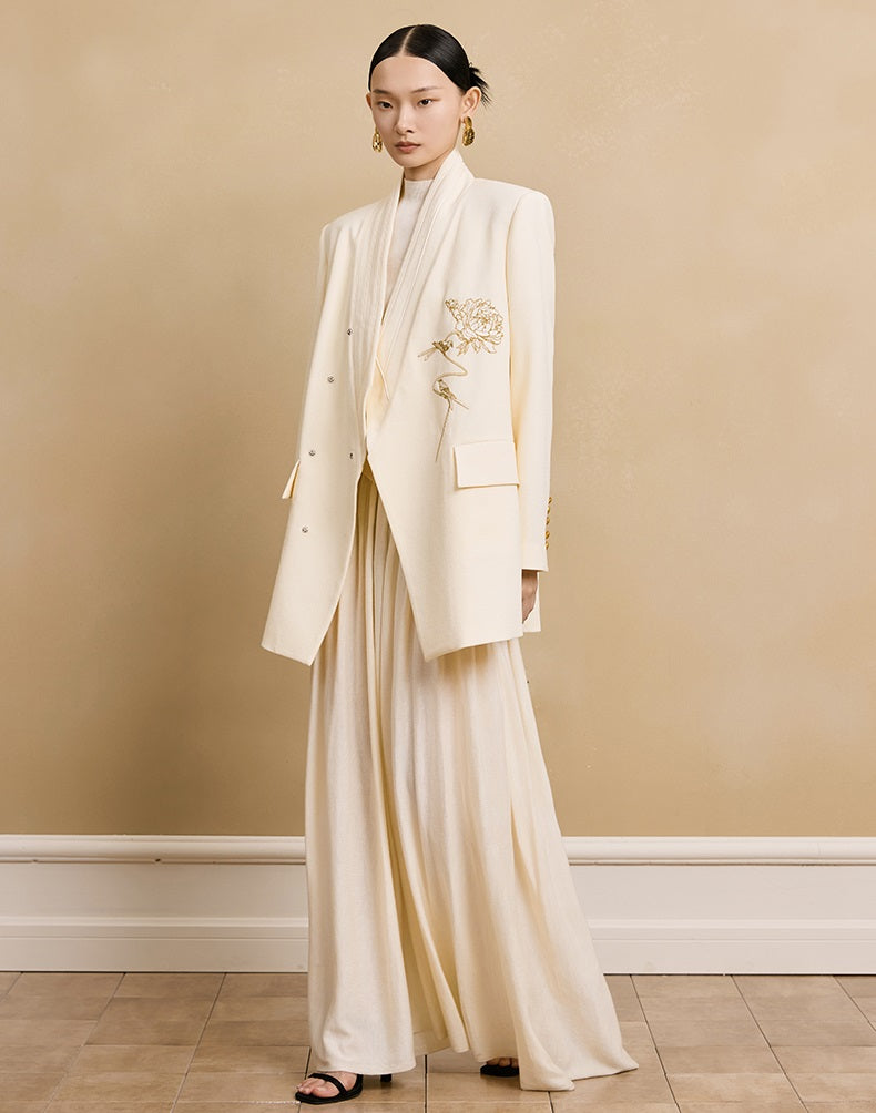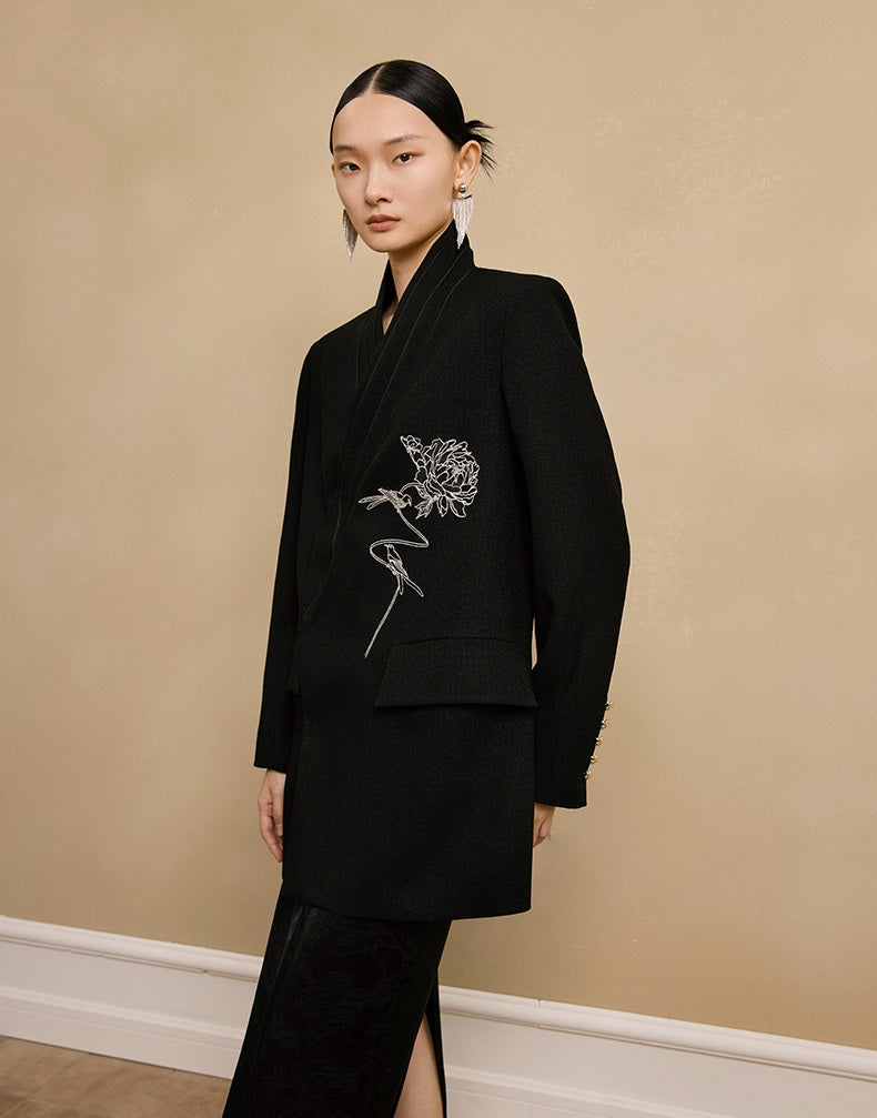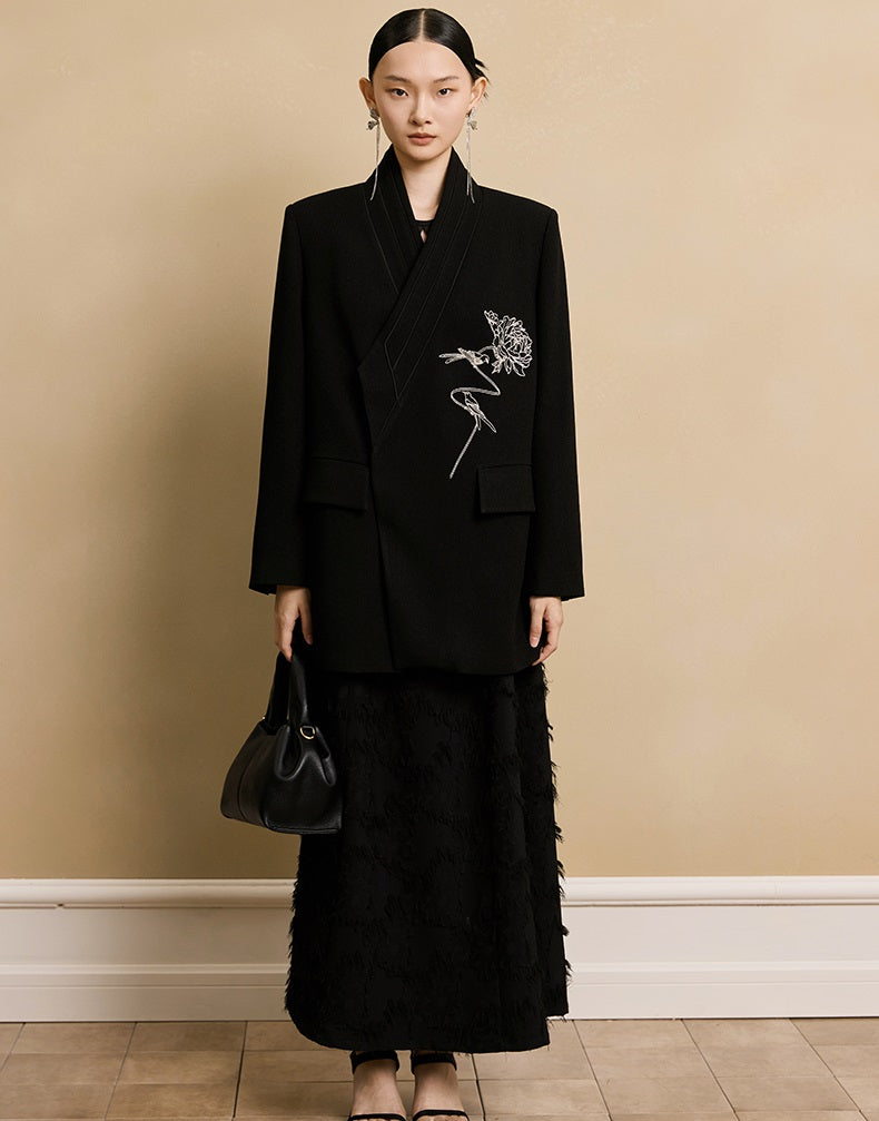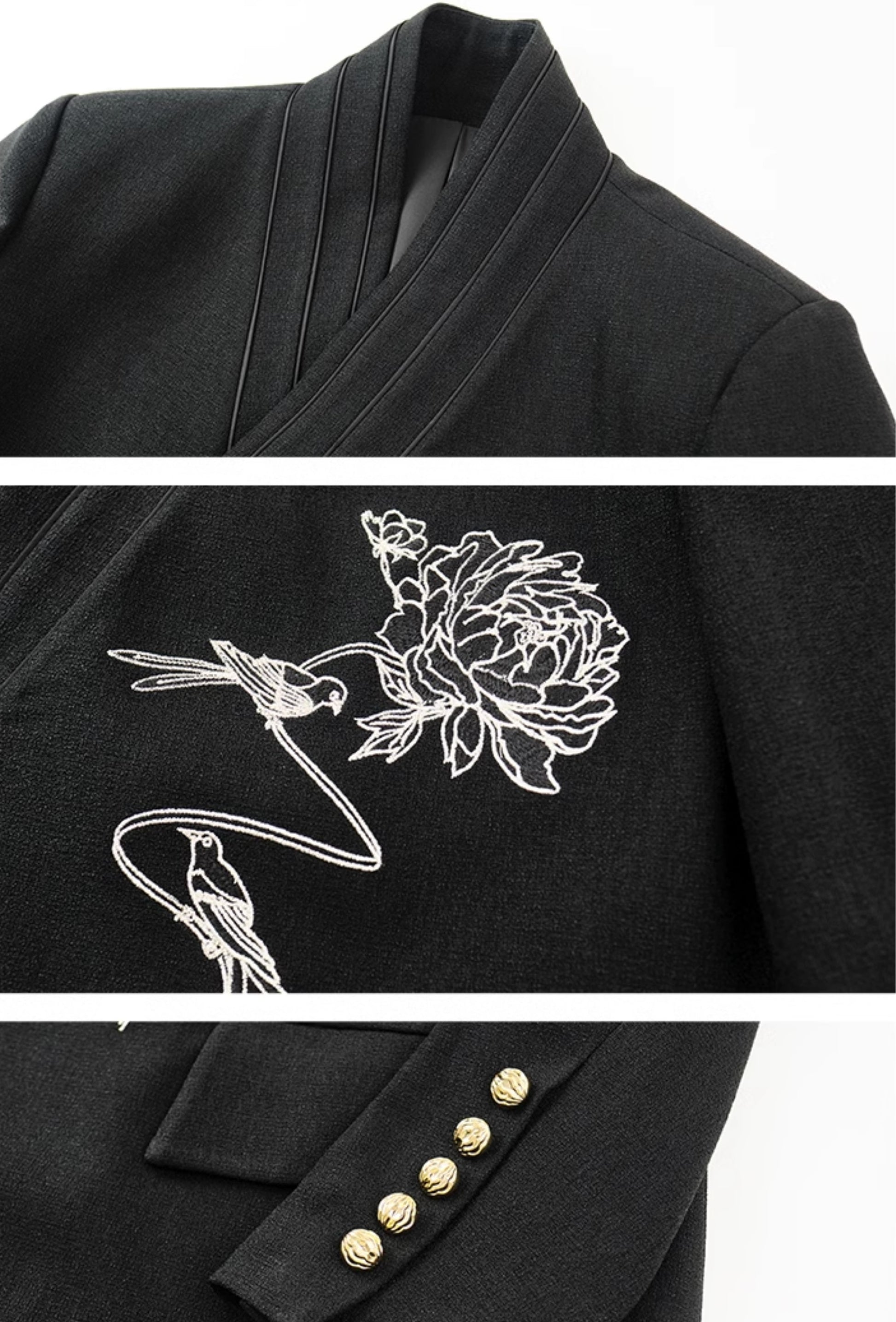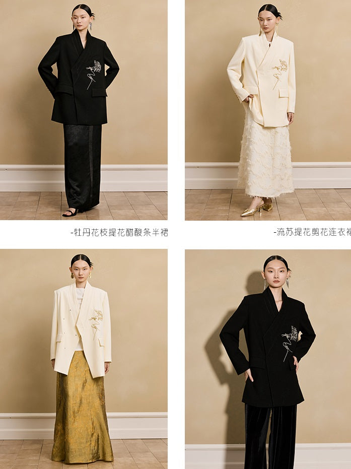 HECO Acetate Woven Embroidery V-Neck Blazer Women's Spring- LET.