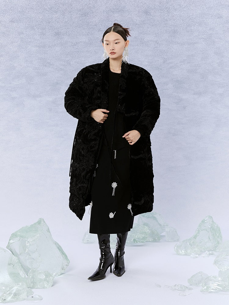 HECO Black white coffee Raccoon Fleece Wool Knitwear Sweater Women - side.