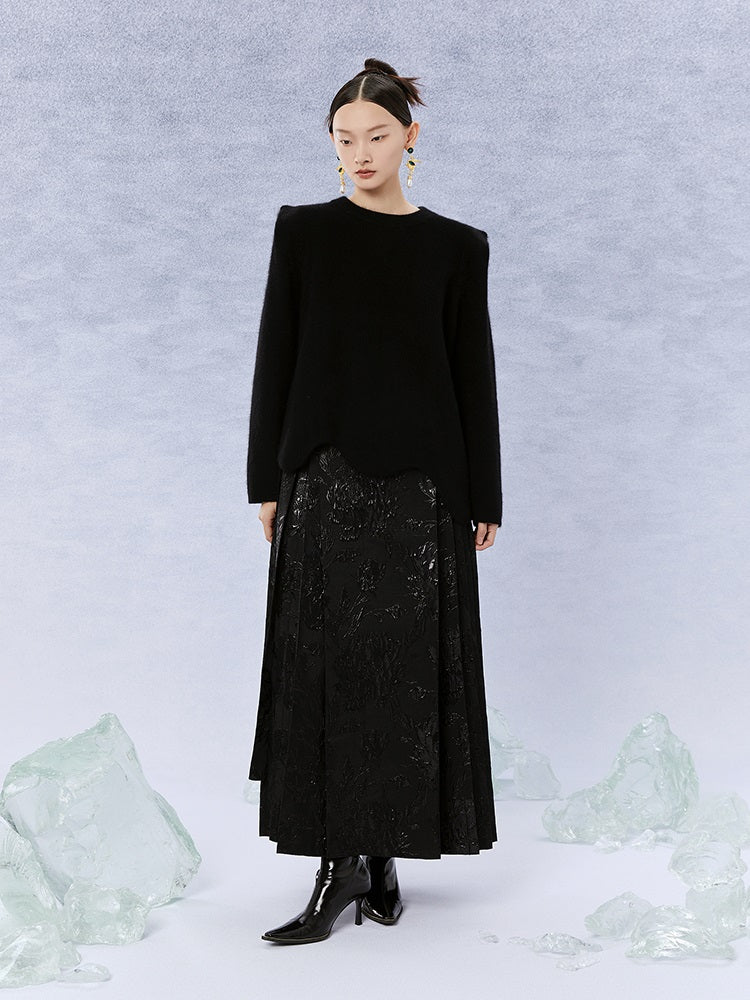 This loose-fit sweater blends 46.7% polyamide, 28% polyester, 13.2% viscose, and 12.1% sheep wool to provide warmth and durability for winter wear. Featuring long sleeves and a classic crew neck, it offers cozy comfort with a refined silhouette. Available in black, white, and coffee, this knitwear piece combines natural fibers and technical materials for versatile, expert-level winter layering.