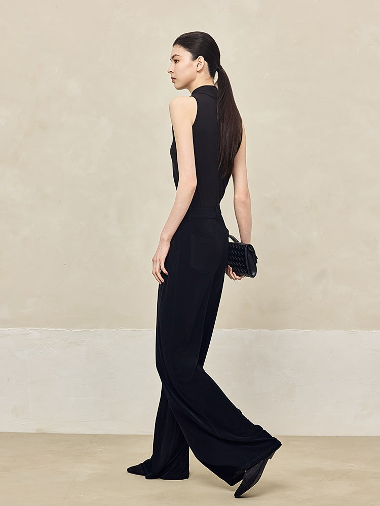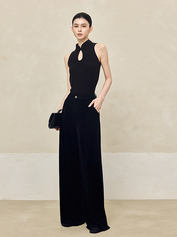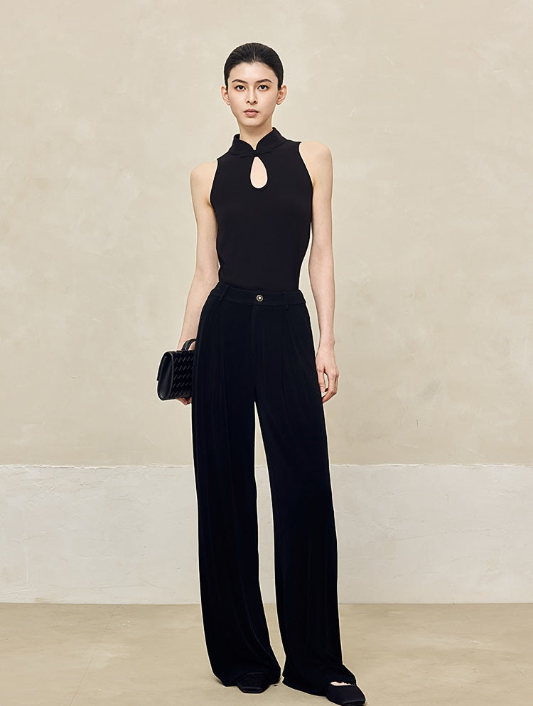 HECO 100% linen drape knitted casual wide-legged black white Pants Women - FINGER.