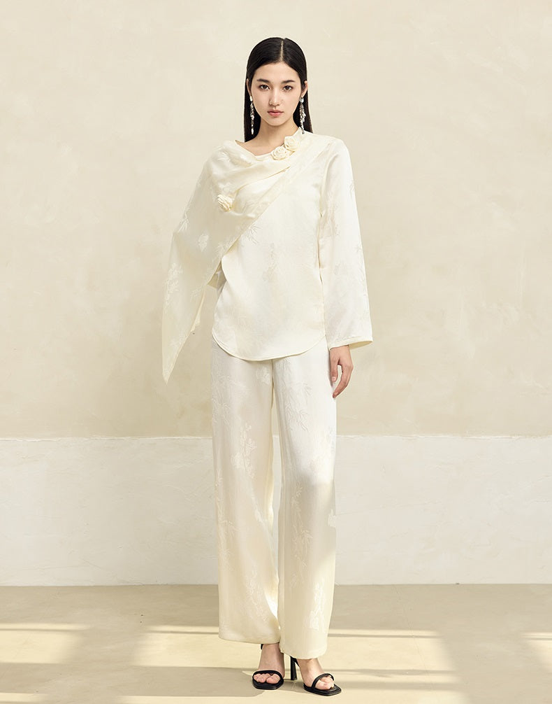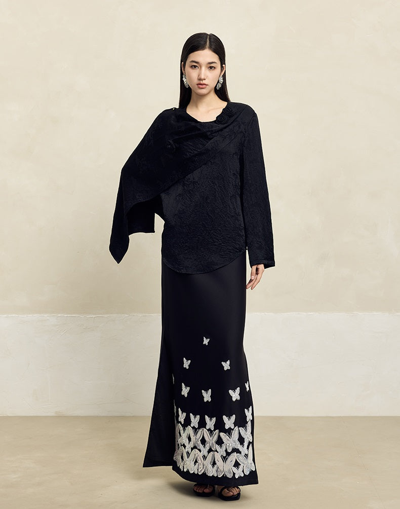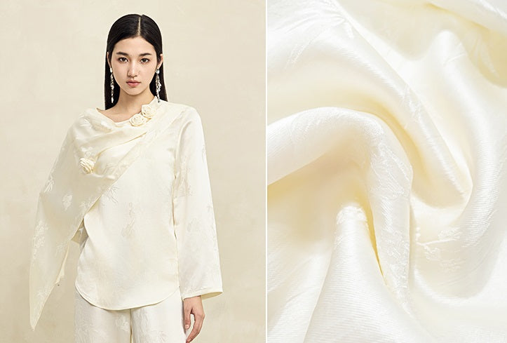 Experience true elegance with HECO's Acetate Texture Handmade Rose Top for women. Available in classic shades of black, dark green, and creamy white, this top features long sleeves for versatility and beautiful handcrafted detailing. Elevate your wardrobe with this timeless piece.