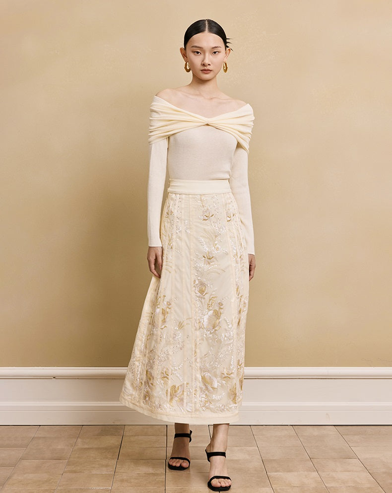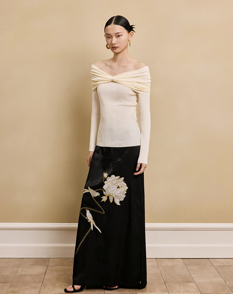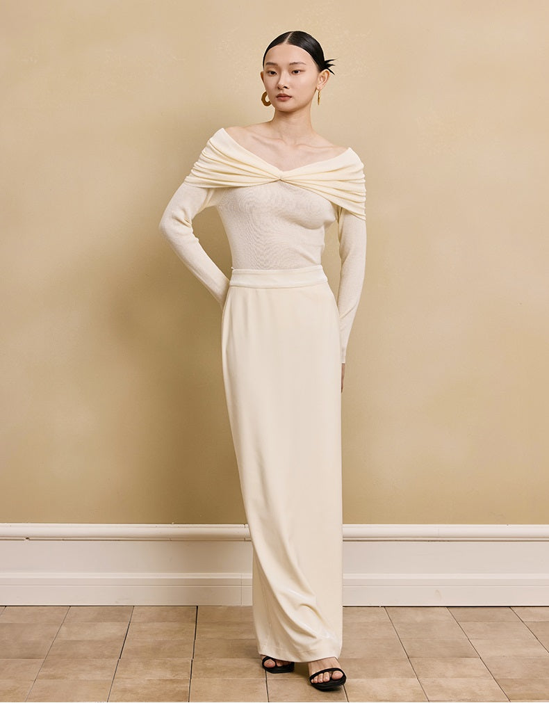 This meticulously crafted long-sleeved knitwear features a precise blend of 54% polyester fiber, 20% nylon, 20% acrylic, and 6% wool—a composition engineered for optimal durability while maintaining exceptional softness. The V-neck design creates a visually elongating effect, while the off-the-shoulder silhouette offers contemporary styling versatility. Available in vibrant red, classic black, or neutral creamy white, this spring garment demonstrates superior construction with balanced thermal properties. The strategic fiber ratio ensures dimensional stability and color retention through multiple wear cycles, making this a technically sound addition to any transitional wardrobe.