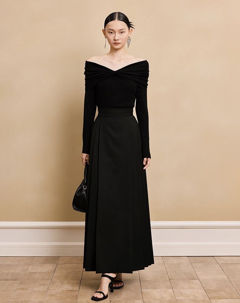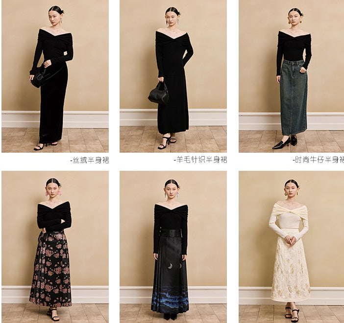 HECO long-sleeved black red knitwear off-the-shoulder spring - DREAM.