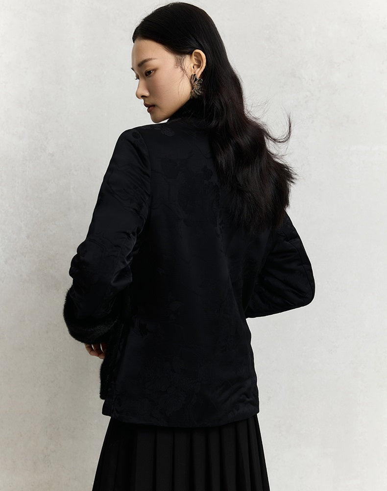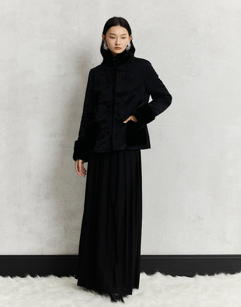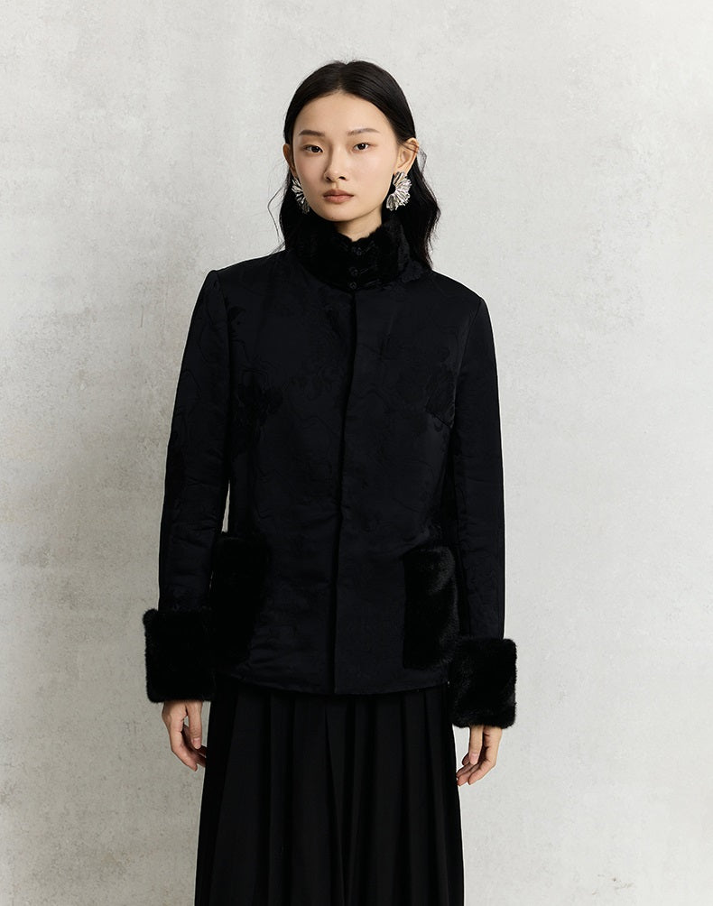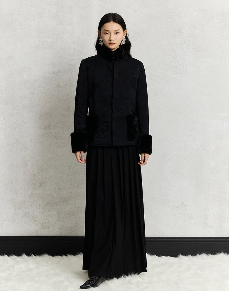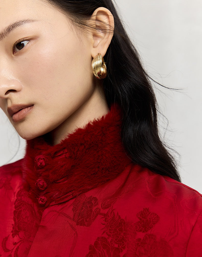 HECO 100% viscose High Neck Fur Collar red black Cotton Suit Women - entity.