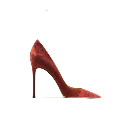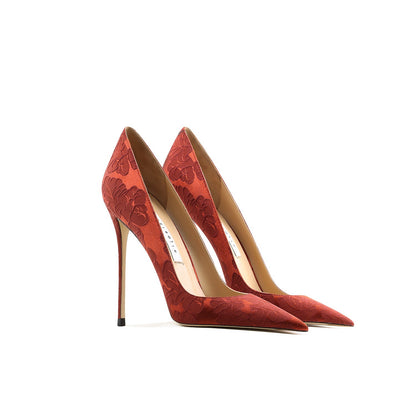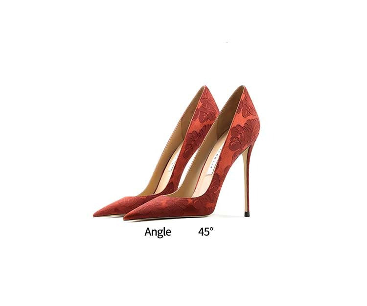 High heels stiletto pumps burgundy wine red satin wedding sexy pointed toe shoes - Tigui