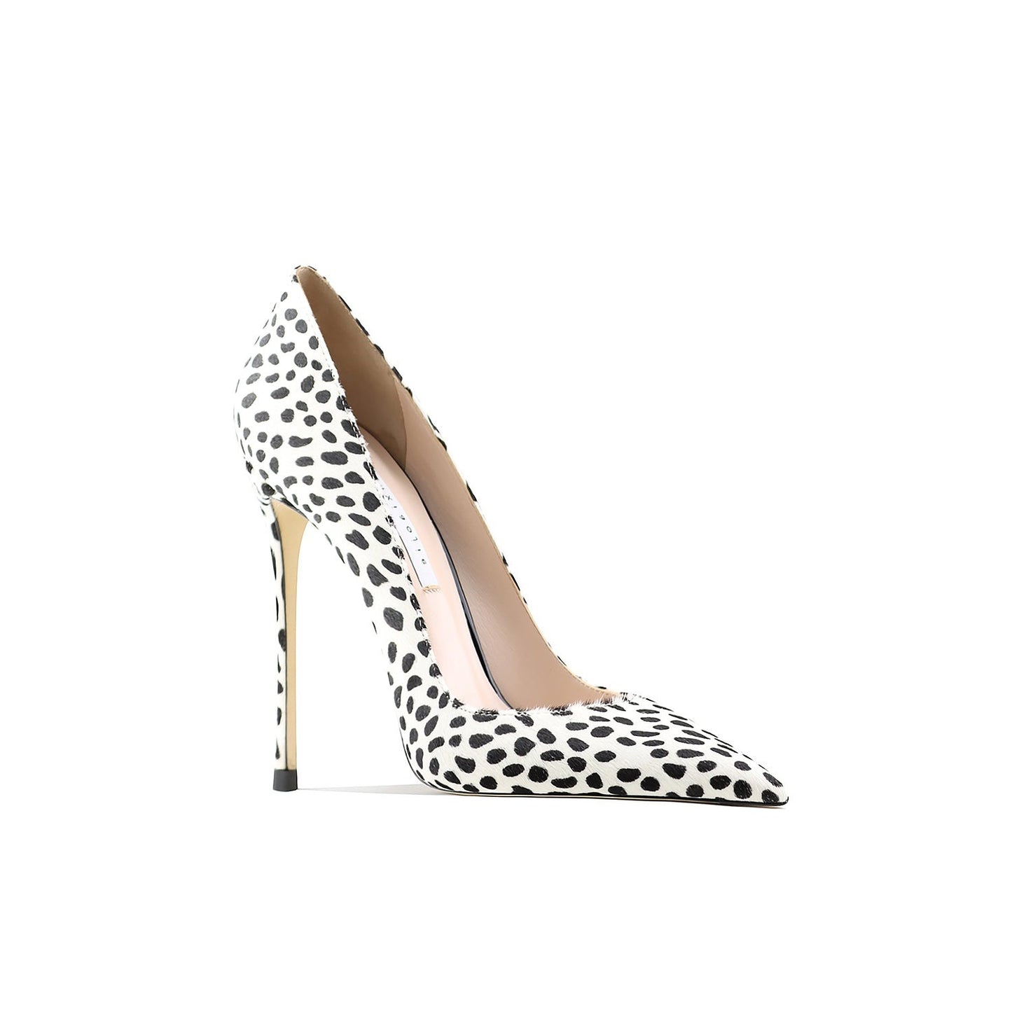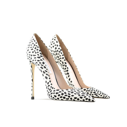 Horsehair Genuine Leather High Heels Stiletto Leopard Print Sexy Shoes- Helene