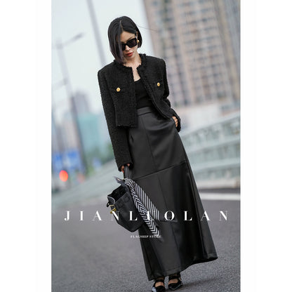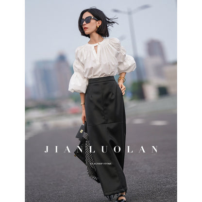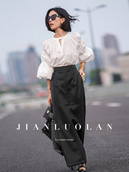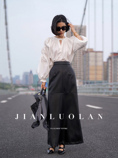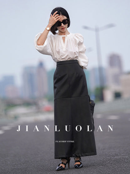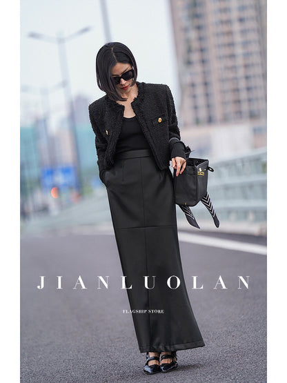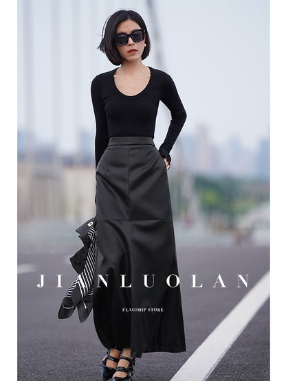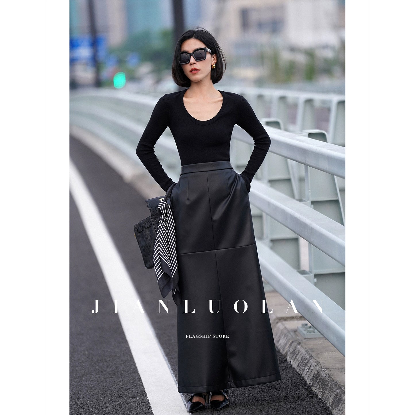 This chic, yet stylish Huanzi customized midi skirt is the perfect addition to your wardrobe for the cooler, autumn months. The loose slits of the skirt give a graceful, elegant movement to any look. Make sure to be the center of attention at your next fall outing with this classic piece.