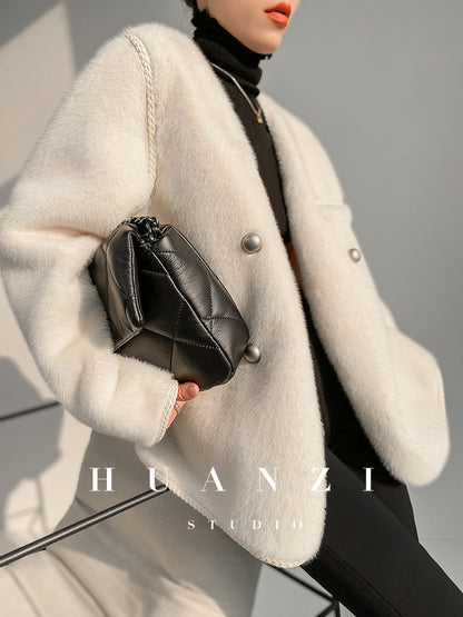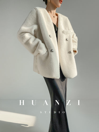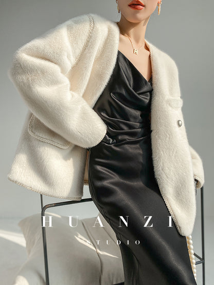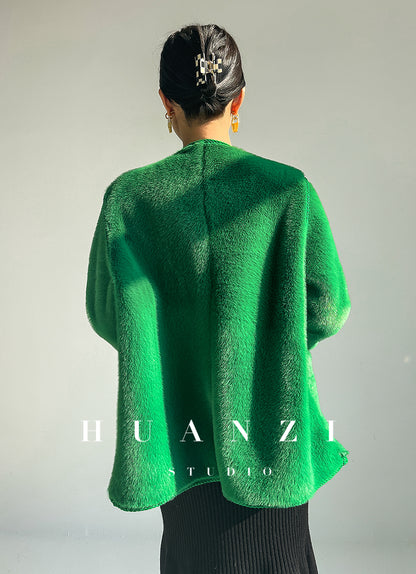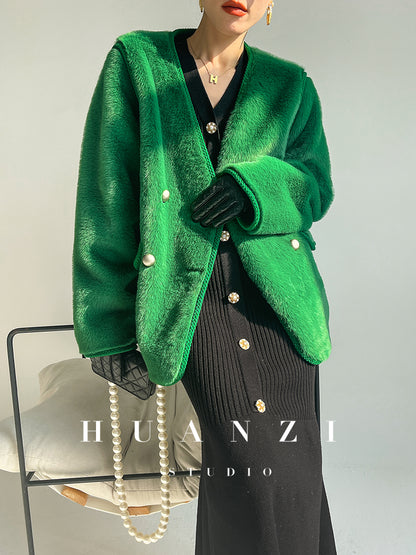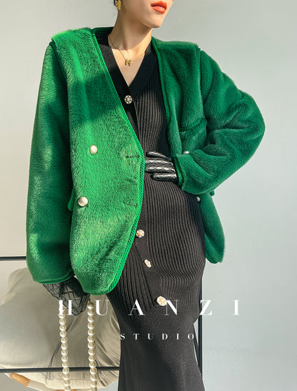 Huanzi green imitation fur autumn winter coat - Miiw