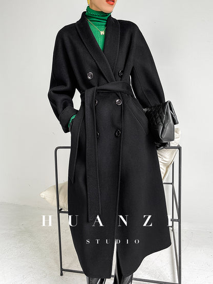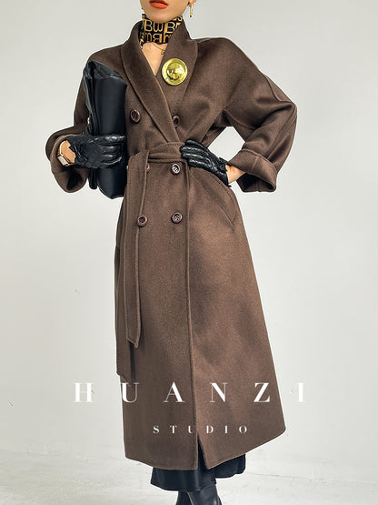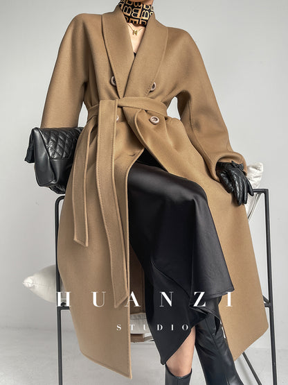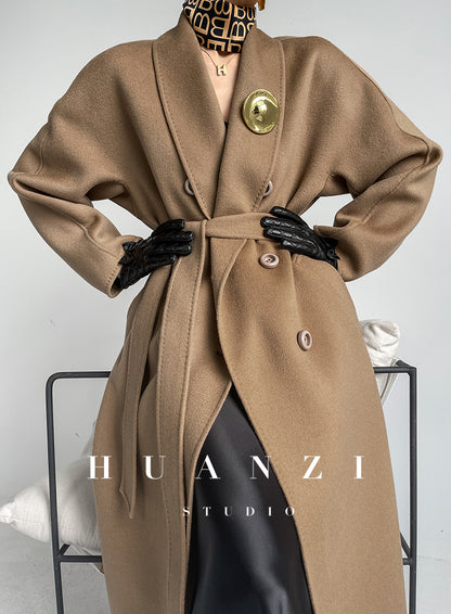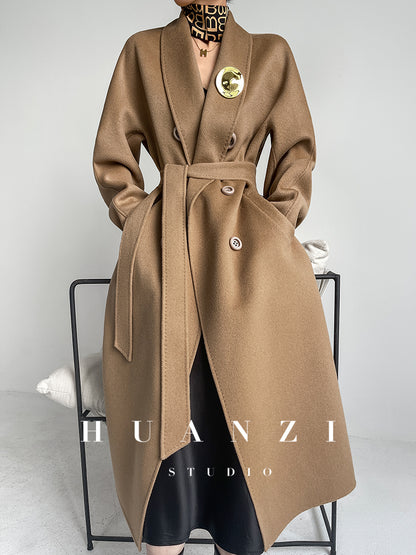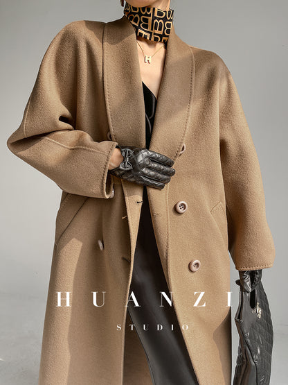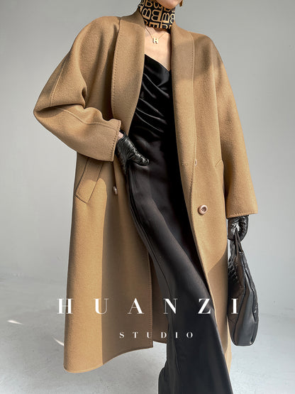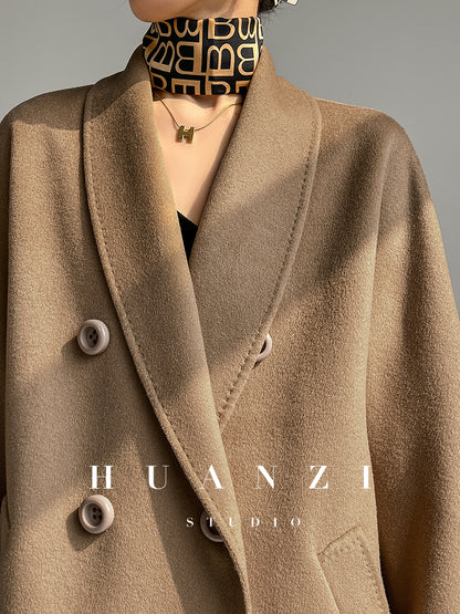 Huanzi high-end double-sided cashmere wool tweed blazer coat - Vellor
