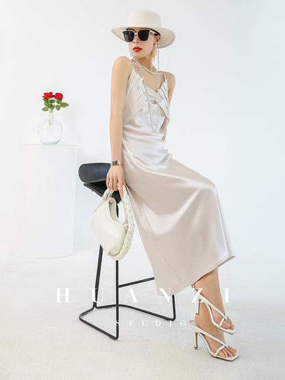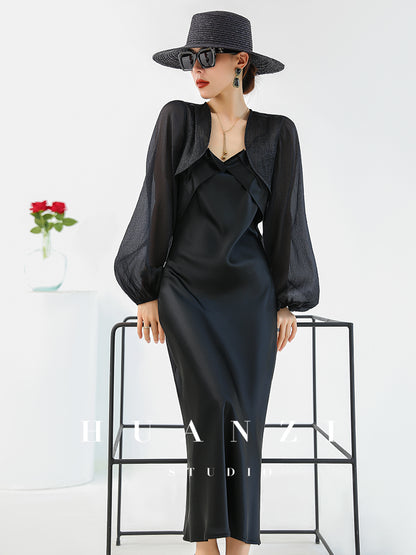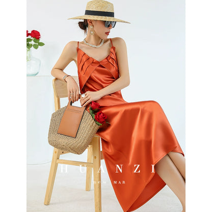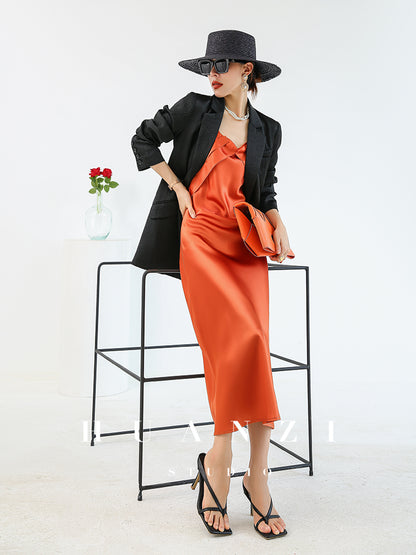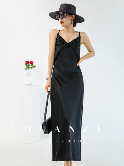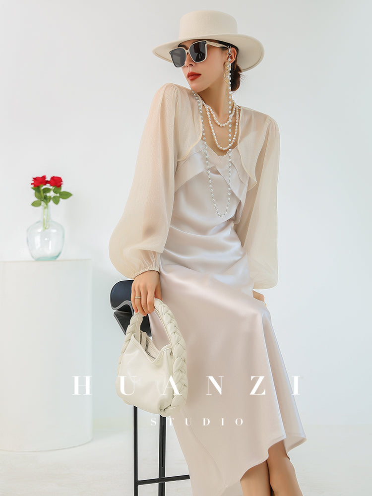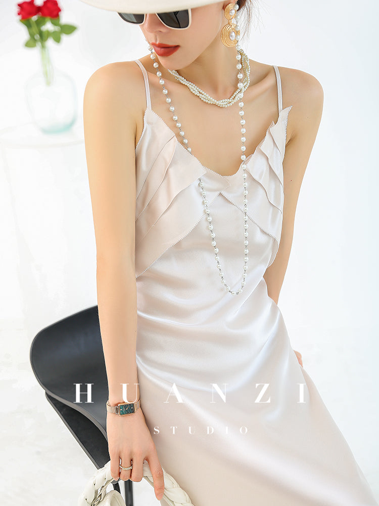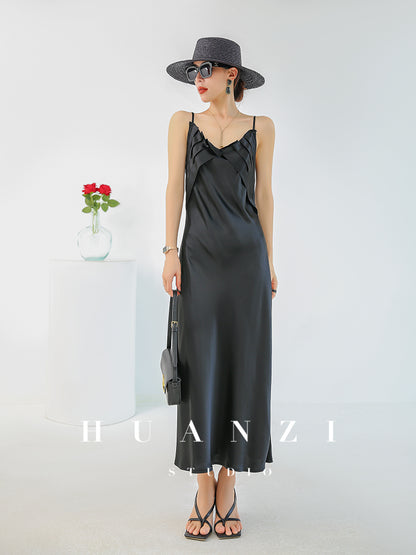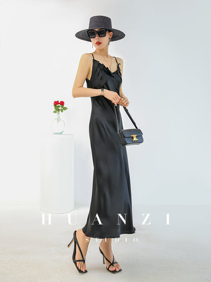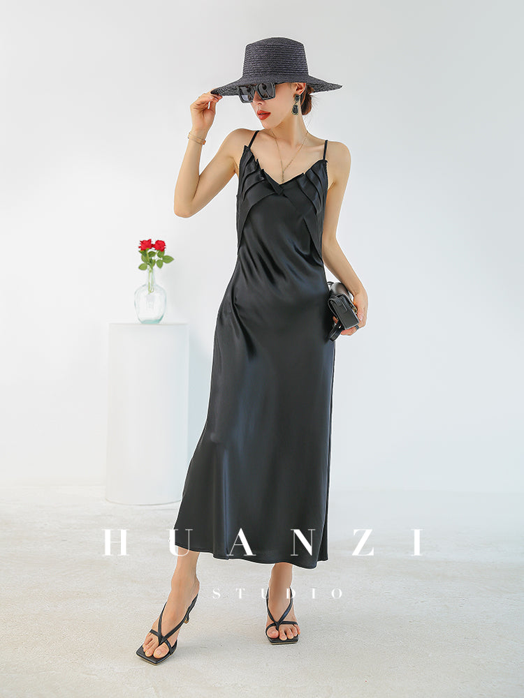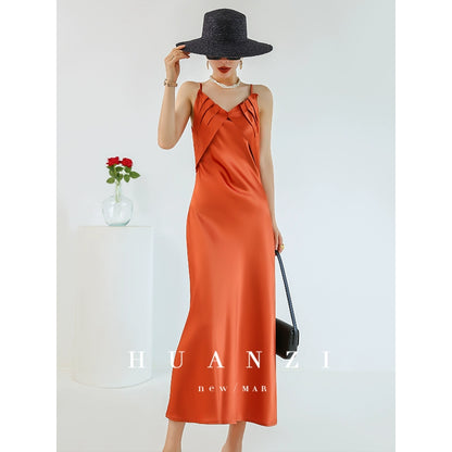A timeless and chic piece of art, the Huanzi satin French high-end slip long dress is the perfect accessory for the fall season. Elegant, classy, and beautiful, the dress embodies a sophisticated yet exclusive spirit and will ensure that you turn heads wherever you go.