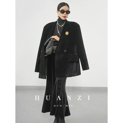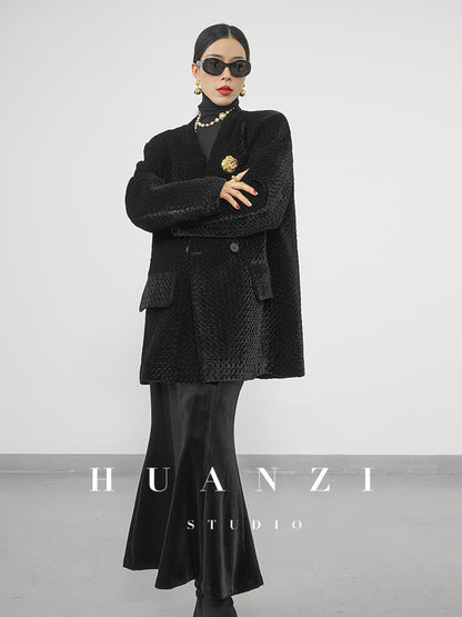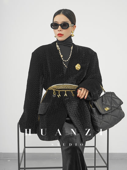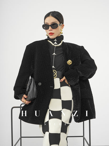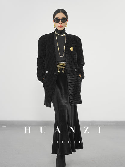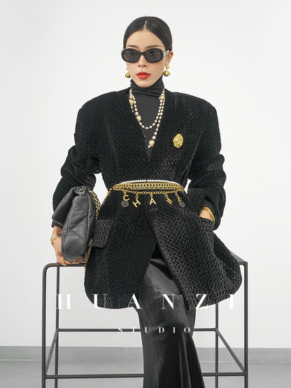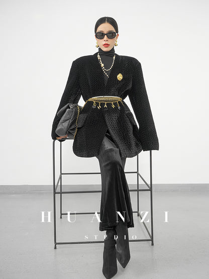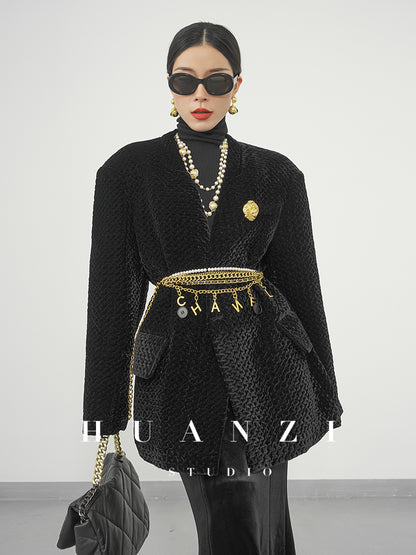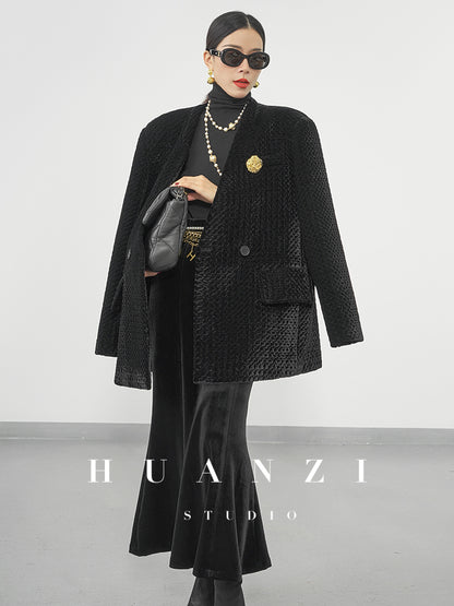 Unlock a new level of sophistication with Huanzi tailors' Carst velvet blazer. Crafted for a slim fit, this beautiful blazer is elegant, fashionable, and exqusitely comfortable. Perfect for any season, it is sure to upgrade any wardrobe with its timeless yet stylish look.