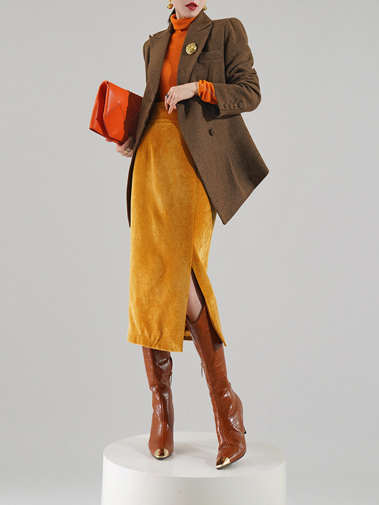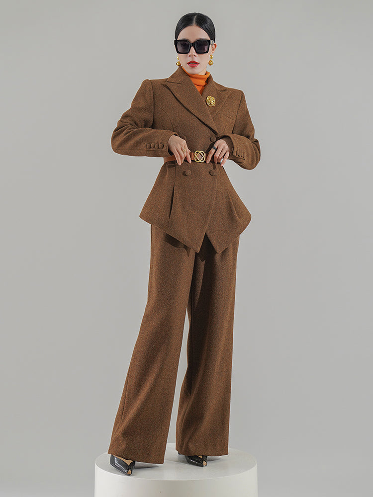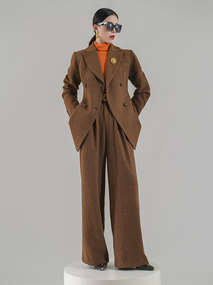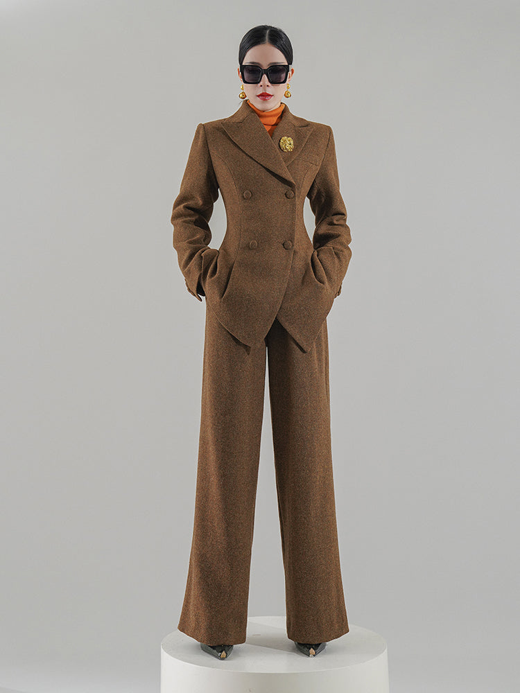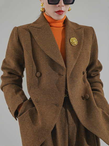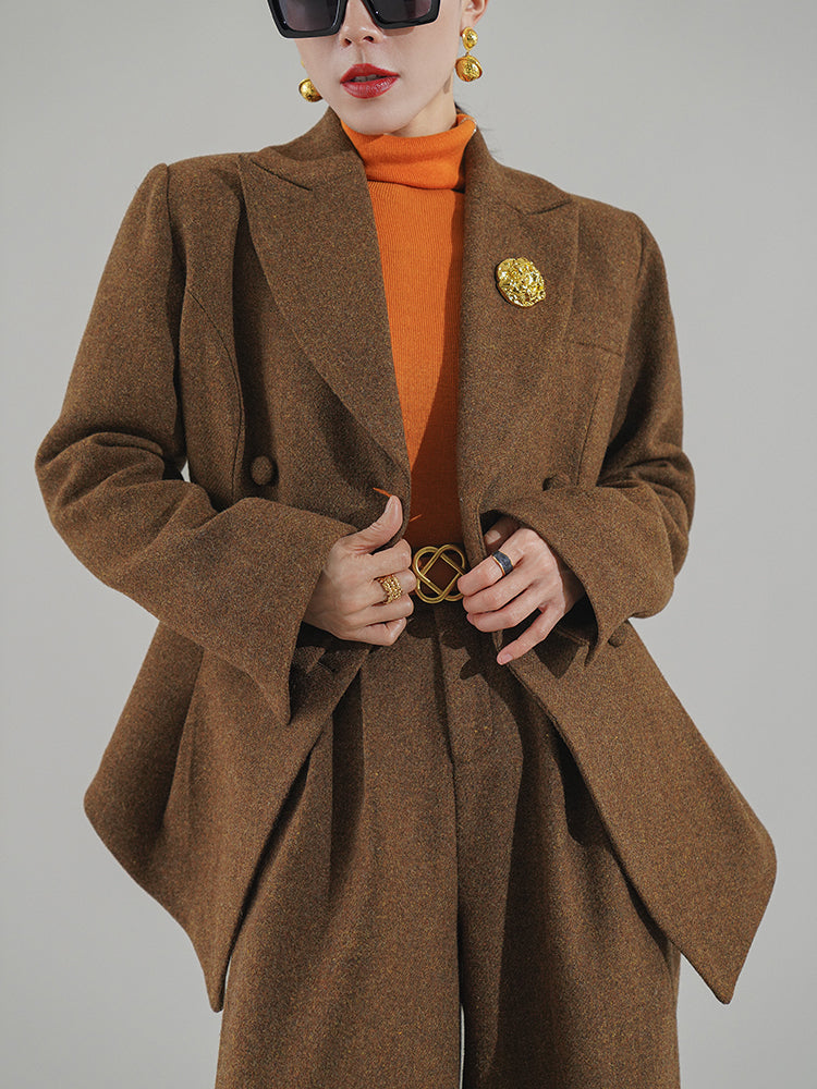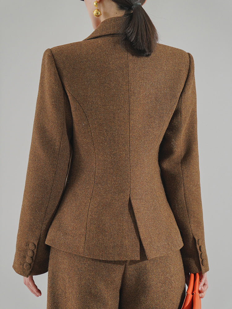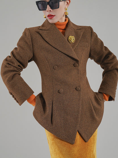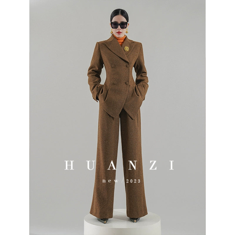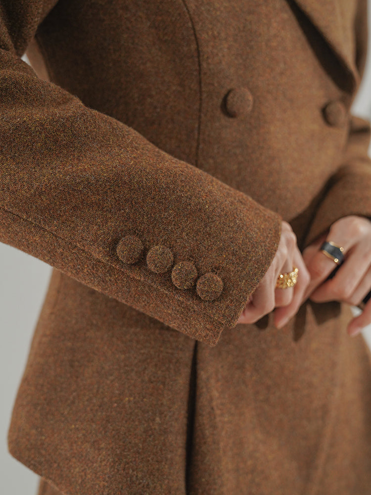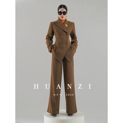 Huanzi worsted wool high-end vintage British women's autumn winter blazer - Tiwe