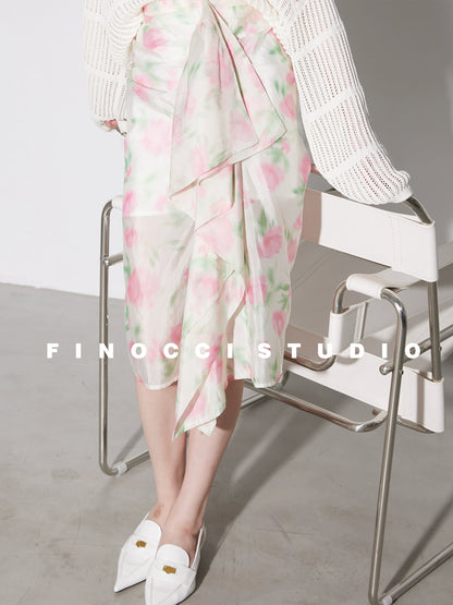 Imported cupro irregular original print designer skirt-loki