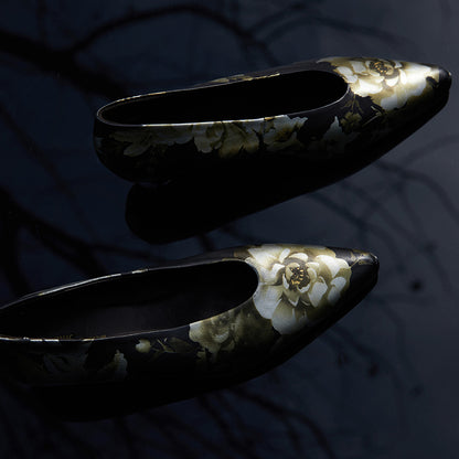 Our Alina Pointed Toe Printed Leather Retro Shoes offer a stylish look with lasting comfort. Crafted with a plant flower pattern, sheepskin leather and sheep fur, these shoes feature a retro style, with popular elements of flowers, a wine glass heel and pointed toe. With a heel height of 3-5 cm, and available in high-definition black pottery gold spot, they're perfect for any occasion.