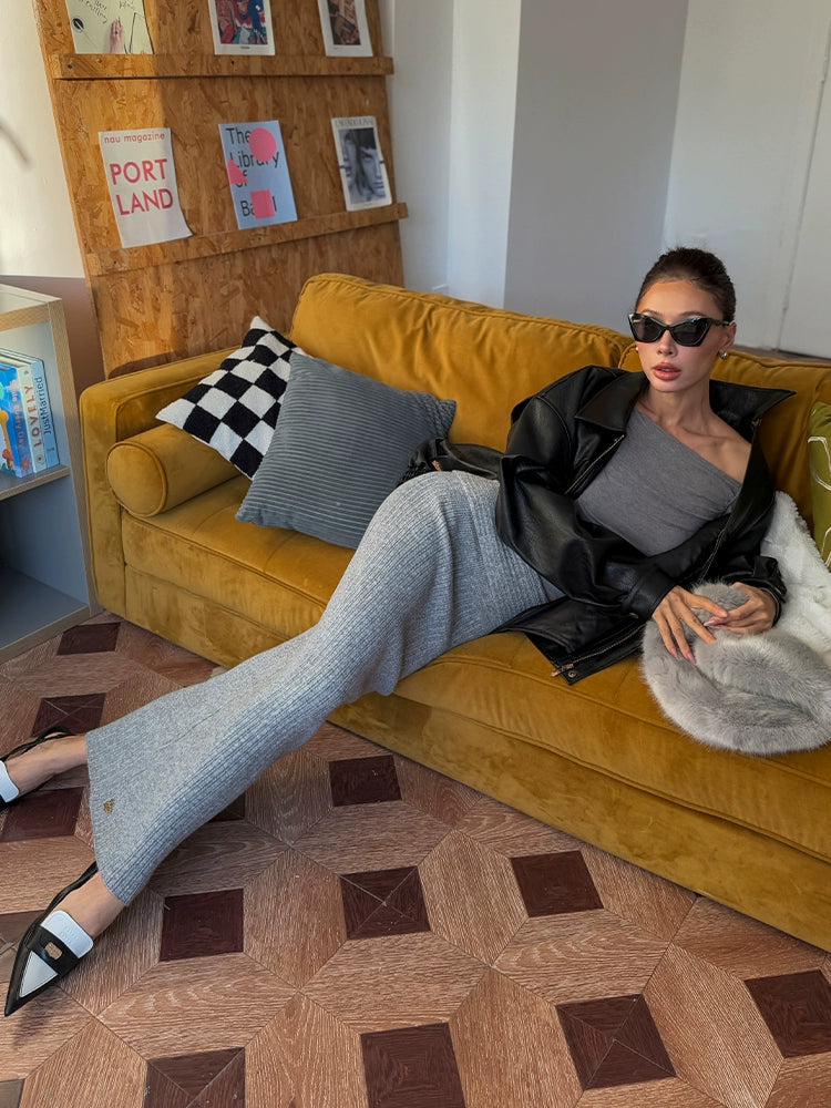 Introducing the Le Palais Vintage Autumn/Winter Gray Wool Knit Wrap Long Skirt. Elevate your style with this elegant piece, perfect for the colder seasons. Crafted from high-quality wool, this skirt offers both warmth and sophistication. A must-have for any fashion-forward wardrobe.