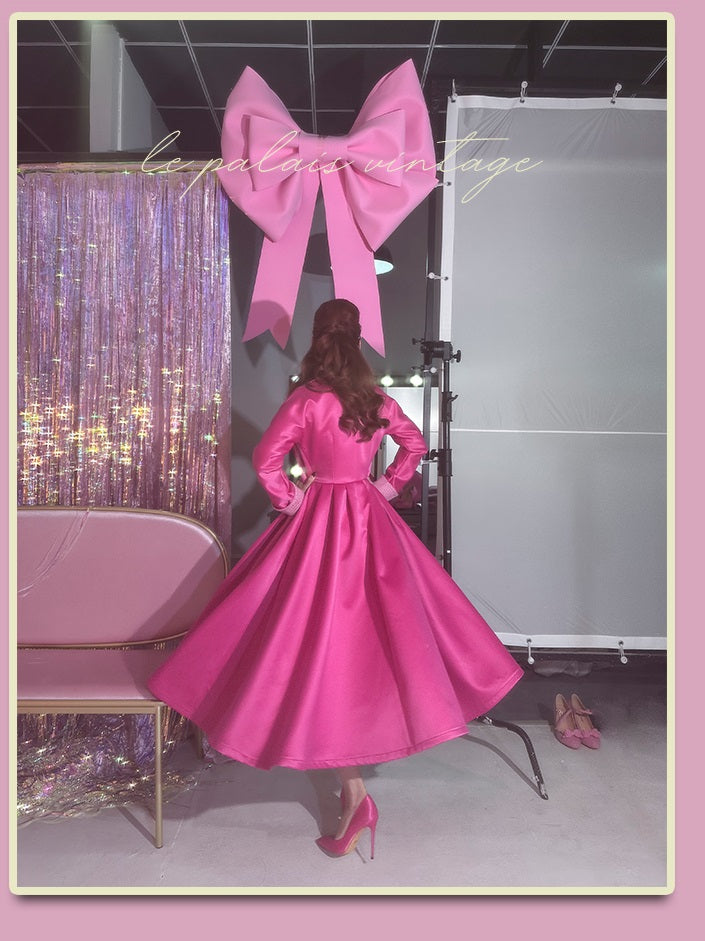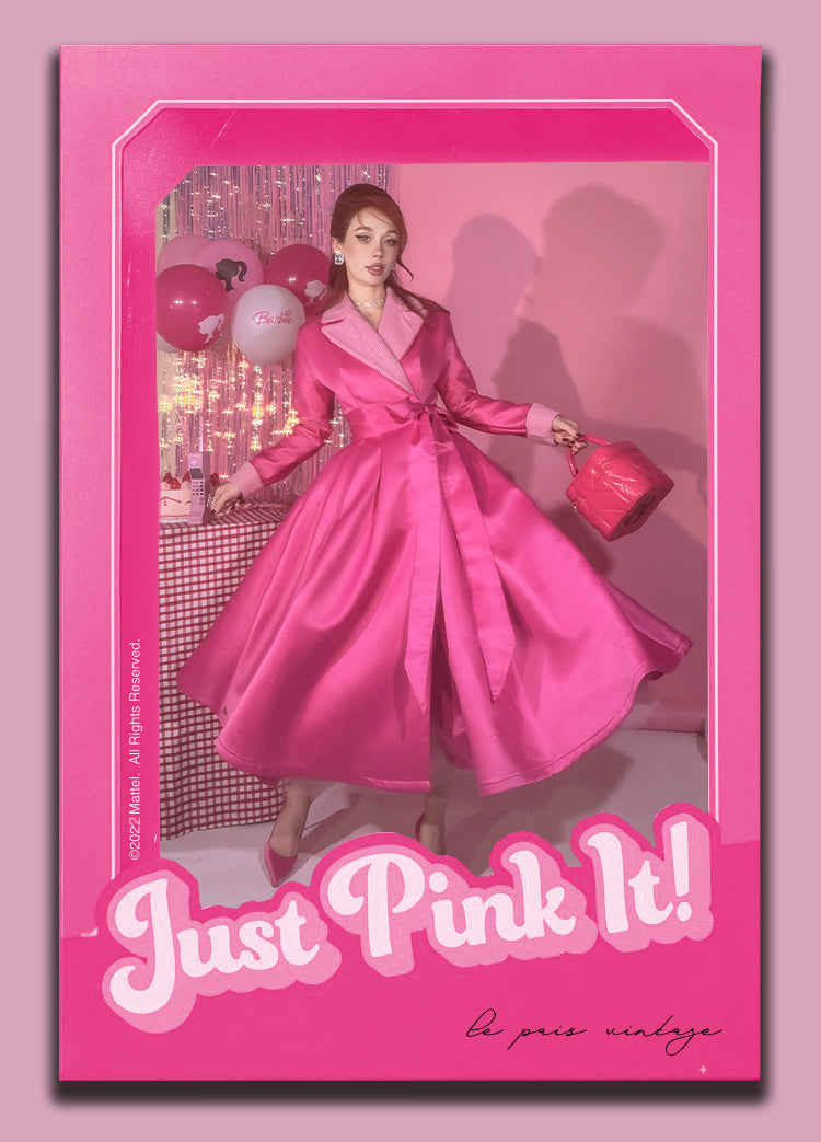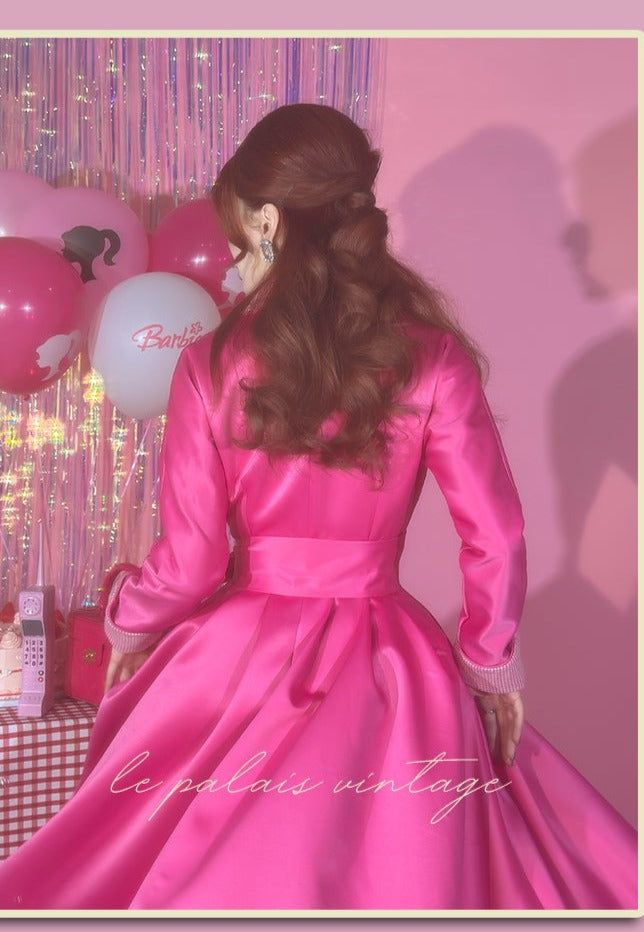 Le Palais vintage Barbie pink chunky satin full skirt long coat - Keni