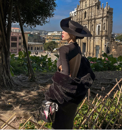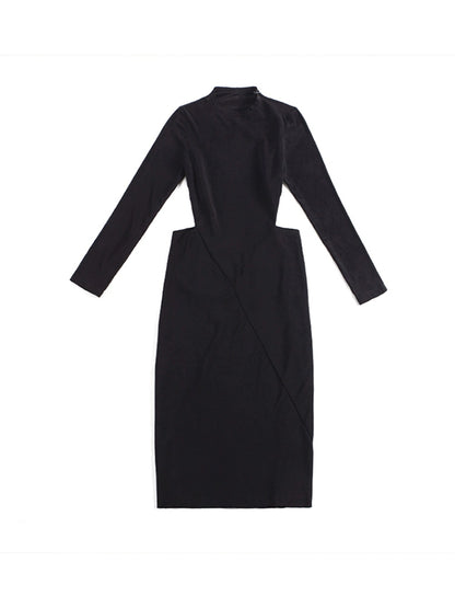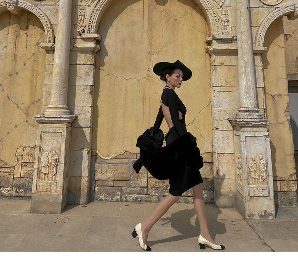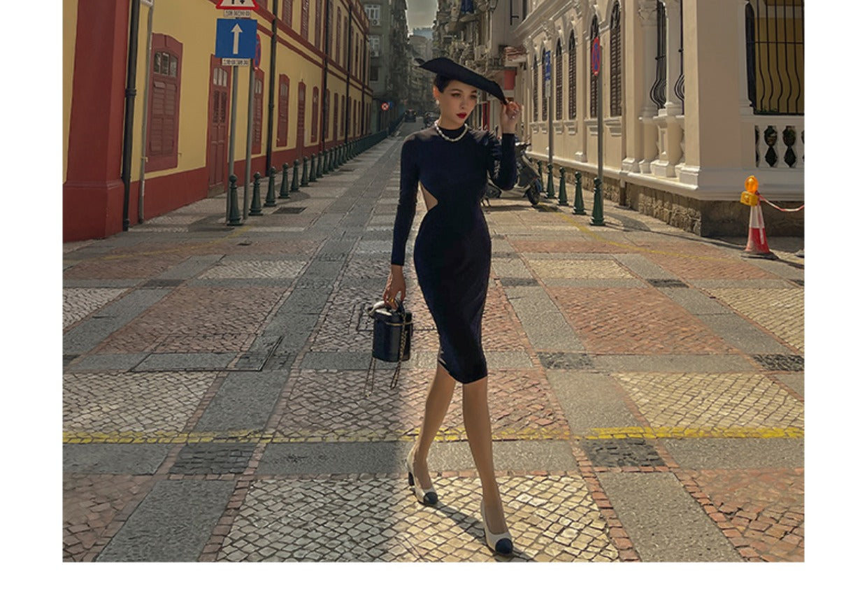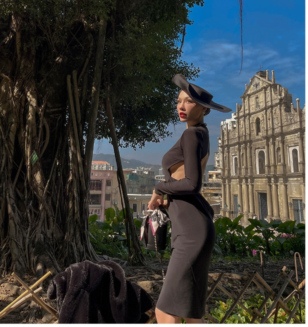 Transform your style with Le Palais Vintage's Black Long Sleeve Open Back Matte Satin Cocktail Dress. Its unique design features a long black gown with a dashing open back, perfect for fall or autumn events. This dress exudes luxury and sophistication, making you look glamorous and chic. Elevate your wardrobe with this fabulous and exquisite piece.