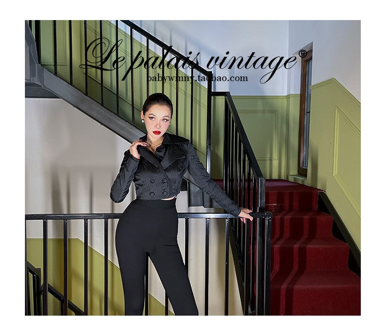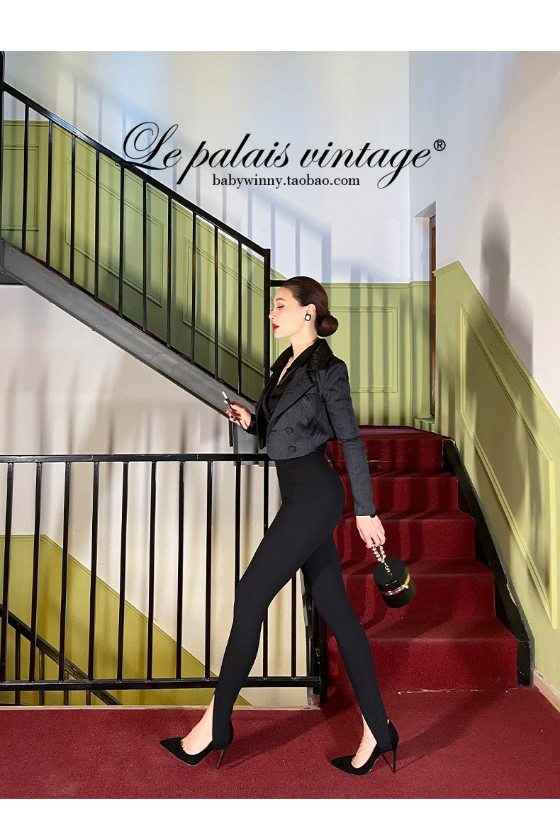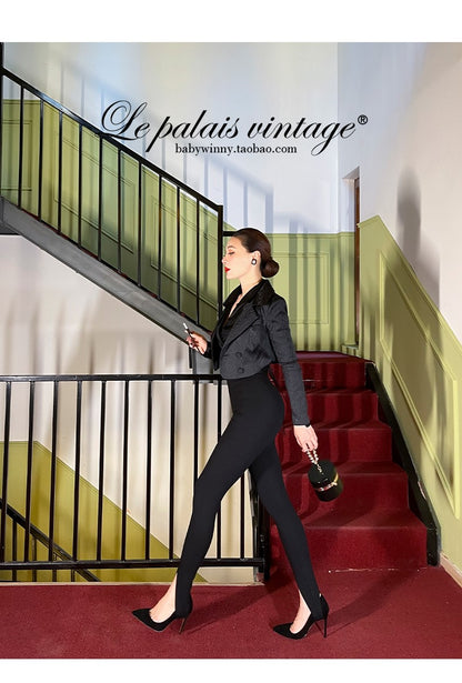 Le Palais Vintage Black Long Sleeve Slim Fit Crop Dinner Jacket-Laurel ( V )