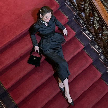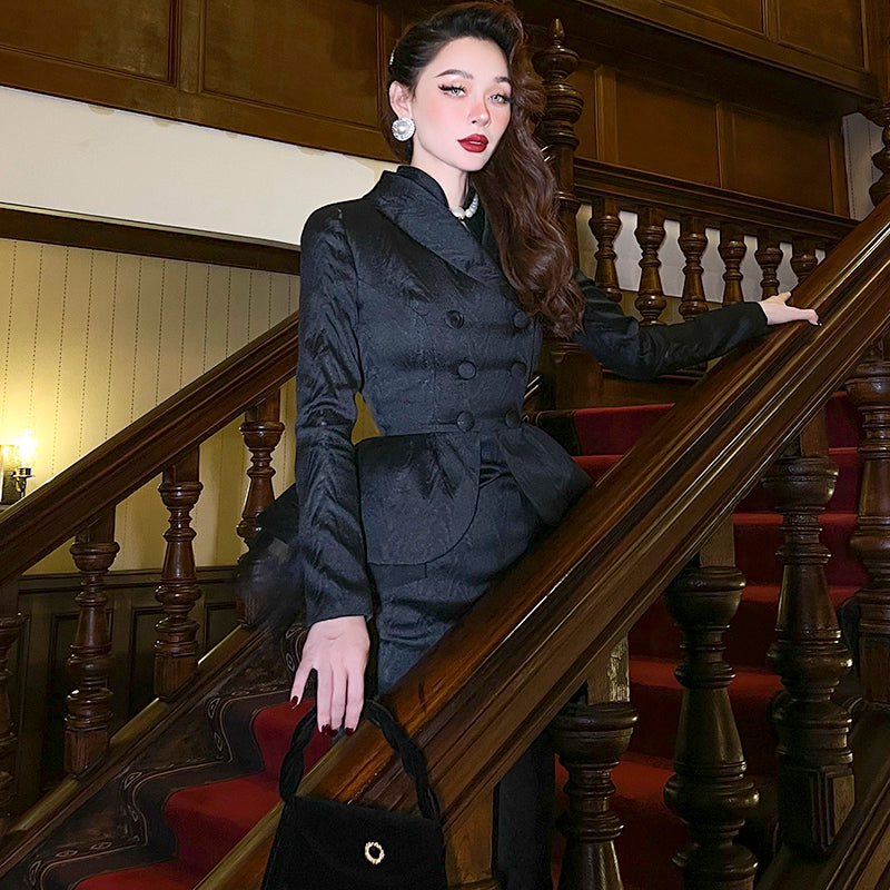 Le Palais Vintage classic black Morley tuxedo slim coat - Moxy